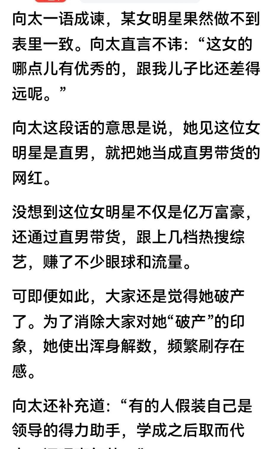 以往高高在上的向太, 自从直播带货后, 变成一个街头传播信息的大妈。 我不关心她