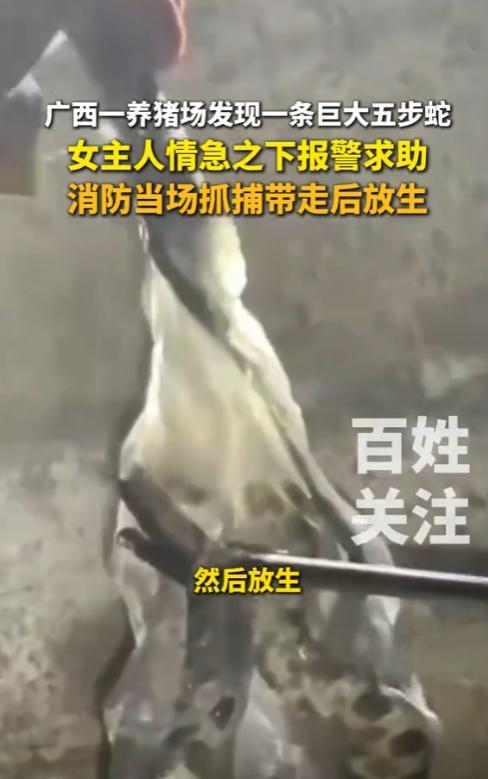 “太吓人了!”广西桂林,一养猪场发现一条巨大的五步蛇,女主人被吓得双脚发软,情急之下报警求助,消防人员火速赶到现场处理,网友:被这么大条五步蛇咬到,绝对没命了! 据百姓关注9月19日报道,事发当天,养猪场的女主人像平时一样,去猪圈里巡视一下,看看猪仔们吃得怎么样,有没有生病的。 猪圈里光线有点暗,还夹杂着一股特有的味道,她一边走一边看,一切似乎都和往常没什么两样。 可当她走到一个角落时,眼角的余光好像瞥到了什么不对劲的东西,她停下脚步,定睛一看,心脏瞬间就提到了嗓子眼! 那不是什么绳子,也不是什么杂物,而是一条活生生的,巨大无比的蛇! 这条蛇身上的花纹是一块一块的,颜色特别显眼,更吓人的是它的个头,盘在那里就像一座小山,粗壮的身体充满了力量感,三角脑袋微微昂着,吐着信子,好像在打量着这个闯入它地盘的人。 女子虽然是在农村长大的,平时也见过些蛇,但这么大的,她真是头一回见,她的脑子里“嗡”的一声,瞬间就想到了一个可怕的名字——五步蛇! 在她们当地,关于五步蛇的传说可太多了,都说这玩意儿毒性大得吓人,被咬上一口,走不出五步就得倒下。 虽然这说法有点夸张,但足以说明它的剧毒是刻在每个人心里的恐惧,一想到这,女子的双腿就像灌了铅一样,完全不听使唤,整个人僵在原地,连呼吸都忘了。 她和那条巨大的五步蛇就这么对峙着,时间仿佛凝固了,猪圈里的猪似乎也察觉到了危险,都缩在另一边,不敢出声,那条蛇似乎并没有马上攻击的意图,只是警惕地看着她。 女子的求生本能终于战胜了恐惧,但是她依然不敢做出任何大的动作,生怕惊动了这条“蛇王”。 她一点一点地,小心翼翼地往后退,眼睛死死地盯着蛇,直到退出了猪圈,她才像离弦的箭一样,撒腿就往屋里跑,一边跑一边喊,声音都带着哭腔。 回到屋里,她关紧房门,靠在门上大口大口地喘着粗气,心脏还在狂跳不止,稍微平复了一下,她哆哆嗦嗦地拿出手机,手抖得连屏幕都点不准,试了好几次才成功拨打了报警电话。 电话接通的那一刻,她几乎是哭着把情况说了一遍,接到报警后,当地的派出所和消防队都非常重视,这可不是开玩笑的,五步蛇伤人事件一旦发生,后果不堪设想。 很快,几名消防员带着专业的捕蛇工具,火速赶到了现场,女主人看到消防员来了,像是看到了救星,连忙指着猪圈的方向,声音还在发颤:“就在里面,就在那个角落,真的好大一条!” 消防员们经验丰富,但听完女主人的描述,表情也变得严肃起来,他们互相递了个眼色,然后拿着长长的捕蛇夹和防护工具,小心翼翼地靠近猪圈。 到了门口,往里一探,连见多识广的消防员都忍不住倒吸了一口凉气,“这家伙确实不小!”一个消防员低声说道。 里面的那条五步蛇比他们预想的还要大,盘踞在那里的气势,一看就是个狠角色,它似乎也察觉到了又有“不速之客”到来,身体绷得更紧了,发出了“呼呼”的警告声。 现场气氛紧张到了极点,消防员们没有贸然行动,而是在外面观察了一会儿,制定抓捕方案,他们决定分工合作,一个人用长杆工具吸引蛇的注意力,另一个人瞅准时机,用捕蛇夹精准地夹住蛇的七寸位置。 方案定好后,行动开始,一名消防员慢慢地将长杆伸进猪圈,轻轻地拨动蛇旁边的地面,那条五步蛇立刻被激怒了,猛地抬起头,朝着长杆就扑了过去,动作快如闪电。 就在它攻击长杆的一瞬间,另一名消防员看准时机,以迅雷不及掩耳之势,用捕蛇夹死死地夹住了蛇的要害。 被夹住的五步蛇疯狂地挣扎起来,粗壮的身体不断扭动,尾巴甩得噼啪作响,试图挣脱束缚,几个消防员合力才将它控制住,然后迅速把它装进了一个厚实的麻袋里,把袋口扎得死死的。 直到这时,在场的所有人才松了一口气,女主人更是感觉全身的力气都被抽空了,直接瘫坐在了地上,很多网友看到这个新闻后,也都吓得不轻。 有网友说:“天哪,这要在猪圈里没注意,一脚踩上去,那真是神仙都难救了,这女主人真是命大,还好反应快!” 确实,这次幸亏女主人处理得当,没有因为惊慌失措去激怒蛇,或者自己尝试去驱赶它,而是选择了最正确的做法——悄悄撤离并立刻报警求助。 我们必须明白,像五步蛇这样的剧毒蛇类,绝对不是我们普通人能处理的,它的攻击性和毒性都极强,任何冒险的行为都可能付出生命的代价。 最后,因为五步蛇是国家保护动物,消防员们将它带到了远离人烟的深山老林里放生了,让它回归了真正属于它的大自然。 这件事也给我们所有人提了个醒,尤其是在农村或者山区生活的朋友们,一定要多加小心。 遇到不明蛇类,千万不要好奇,更不要逞能,保持安全距离,迅速离开,然后交给专业人士处理,这才是对自己生命最大的负责。 信源:百姓关注2025年9月19日——广西一养猪场发现一条巨大五步蛇,女主人情急之下报警求助。