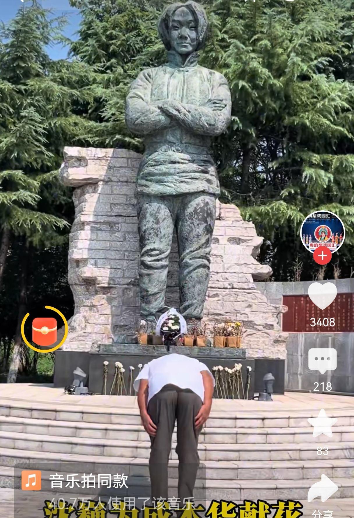 沈巍老师为抗日女英雄成本华烈士敬献花,三个鞠躬礼感动网友,沈巍对成本华这段历史反复读了好几次,一位20来岁的年轻姑娘年对敌人的刺刀竟然不削一顾,这位年轻的女战士没把敌人放在眼里,生的伟大、死得光荣,抗战胜利80周年,为英雄献礼!