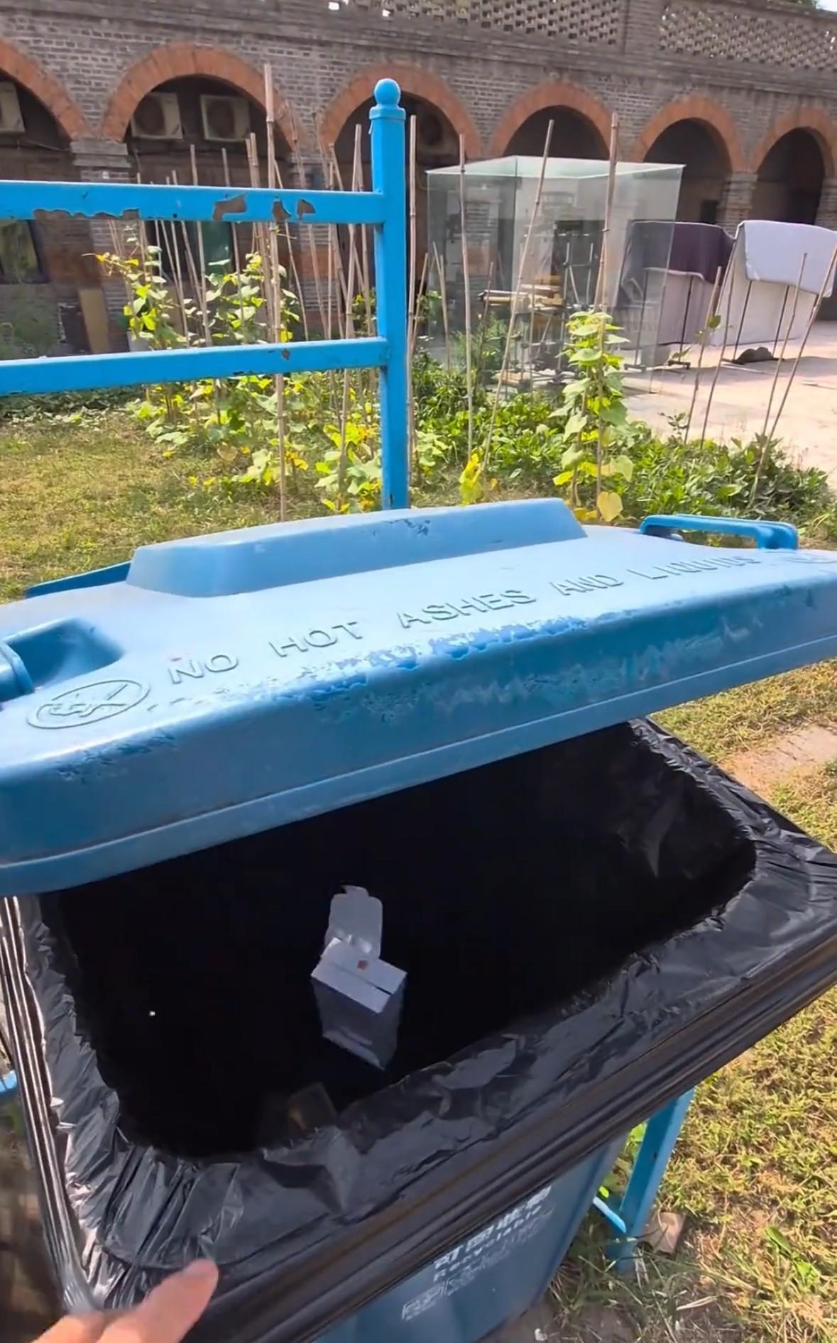 垃圾桶里就那一个东西,一会还得捡回来吧。[红脸笑]