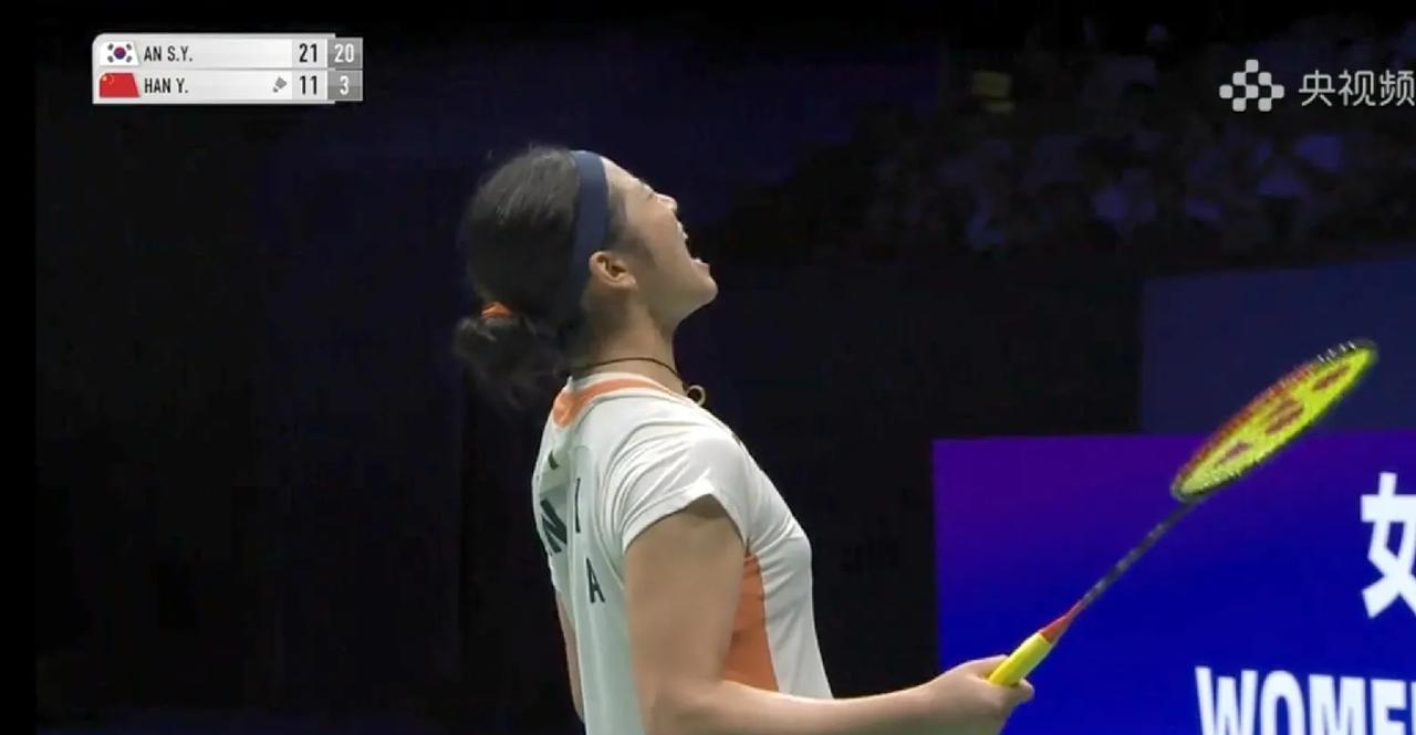 不想看了,简直一场屠杀!中国羽毛球大师赛女单决赛,赛会三号种子韩悦挑战世界第一安洗莹,也许是昨天半决赛和金佳恩的三局大战耗尽了韩悦的体力,第二局得一分都很困难,最终第二局仅仅得到3分,应该是创造了决赛单局得分最低的记录吧!不知道深圳现场观众是什么感受,反正我是看不下去了。 韩悦两局加起来也就拿了13分,获得中国羽毛球大师赛亚军。
