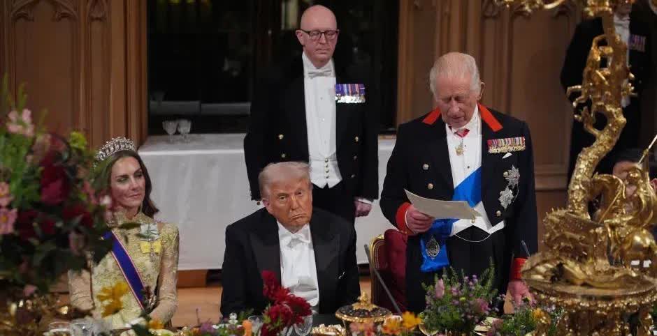 查尔斯智斗特朗普。特朗普到访英国时又是拍查尔斯的后背,又在检阅仪仗队时把查尔斯撇在身后,妥妥的不懂礼仪之举。要说特朗普不懂国际礼仪谁也不信,特朗普会有如此举动,要么是美国老大的心态作祟,要么就是我行我素惯了。查尔斯一个日不落帝国的国王怎能受此屈辱,于是给特朗普来了两手,一是国宴时当着众人的面要求特朗普继续支持乌克兰。特朗普已经明确表态过不再直接支援乌克兰,在这种场合查尔斯提出如此要求,让特朗普十分难堪啊。二是查尔斯坐高、大的凳子,给特朗普安排矮、小凳子,妥妥的让特朗普矮了人一等,等于羞辱了特朗普一把。 特朗普与查尔斯面上和和气气,实则暗中较劲。特朗普以势压人,查尔斯以巧应对,在查尔斯面前特朗普还是嫩了点。 (图片来自网络)
