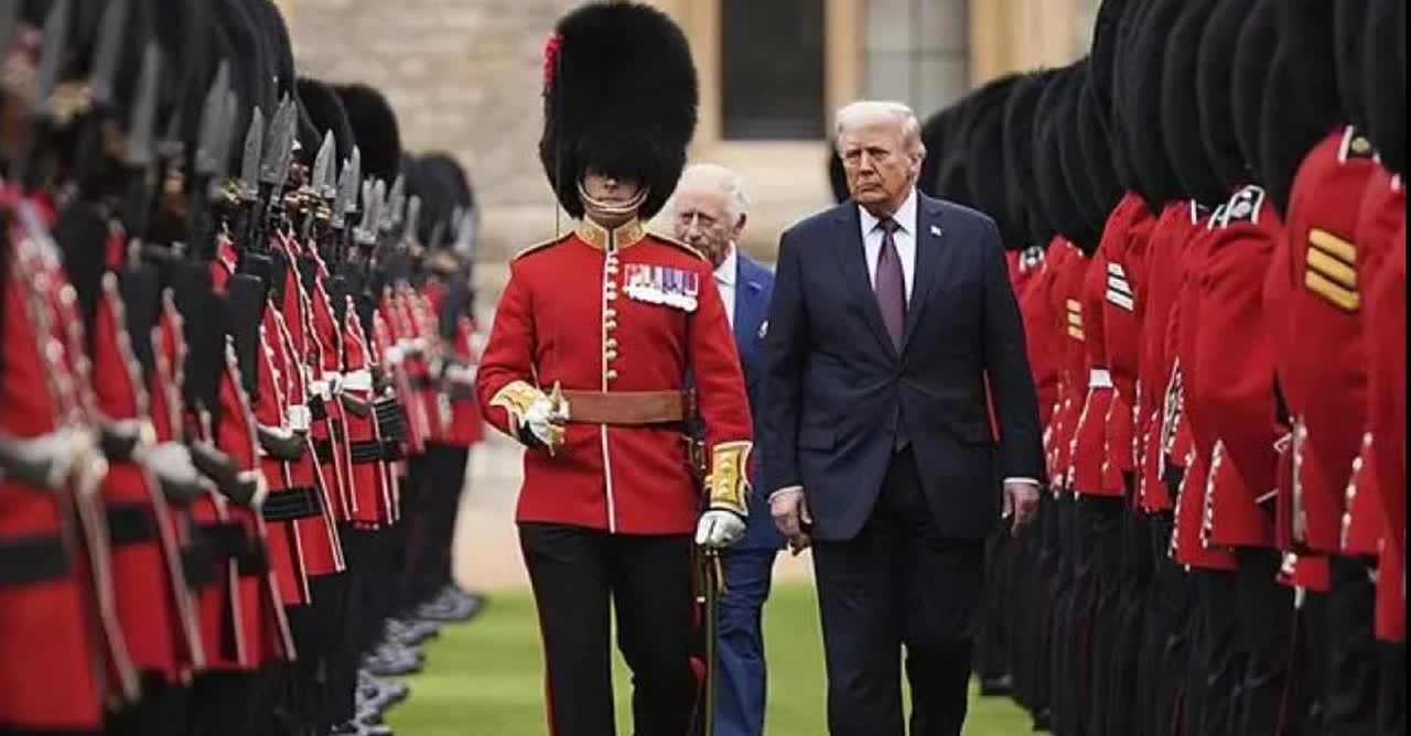 查尔斯智斗特朗普。特朗普到访英国时又是拍查尔斯的后背,又在检阅仪仗队时把查尔斯撇