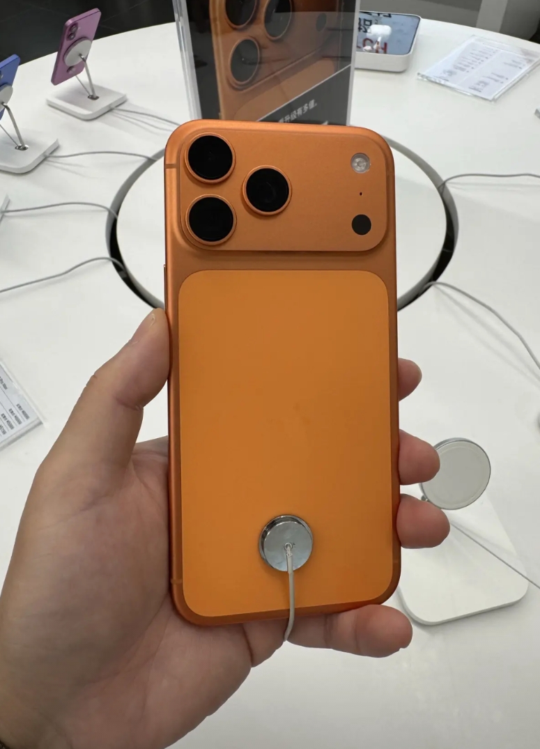 摸到了iPhone17系列的体验机 iPhone17又轻巧手感又好,配上一样的高刷屏幕,前置摄像头和快充,超短板基本补齐全了,配上256版本5999还能叠加500国补,大麦真的毋庸置疑了,国行千万销量基本板上钉钉了属于; iPhone 17pro系列这次4x镜头是亮点,长焦这块终于跟上安卓大部队了,不过橙色这个色差着实是大,蓝色色差最小但貌似很容易划伤,没拍到蓝色体验机有点遗憾;银色最养老,手机壳搭配也是白搭的。