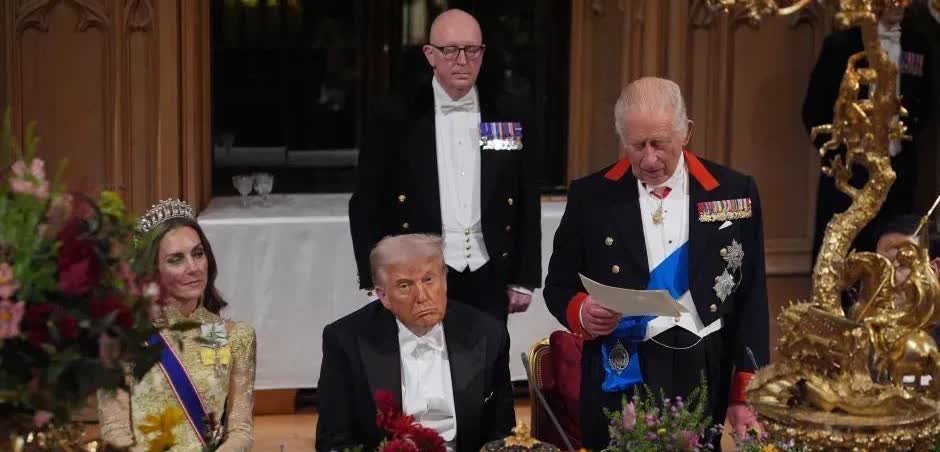 特朗普一进门,没跟查尔斯打招呼,自己先迈步往前走——英国王室的规矩,他当耳旁风。 拍后背、抢C位、说乌克兰别管了,美式直球砸过来,查尔斯没炸,也没躲。 国宴上,四百双眼睛盯着,他突然开口:“希望你继续帮乌克兰。 ” 特朗普筷子顿了一下,酒杯都没碰。 茶会座位,查尔斯坐高椅,特朗普那把矮得像儿童款。 不是忘了安排,是早算好了——英国王室从不吵,但每一寸地,都刻着分寸。 没人敢说“你越界了”,可每道茶点,都在说:这儿不是白宫。 特朗普回美国写书夸他“伟大的家伙”,英国人笑了:你懂什么叫伟大吗? 查尔斯没骂过一句,但每一步,都踩在老帝国的骨头上。 美国优先? 英国早就不靠你点头活着了。