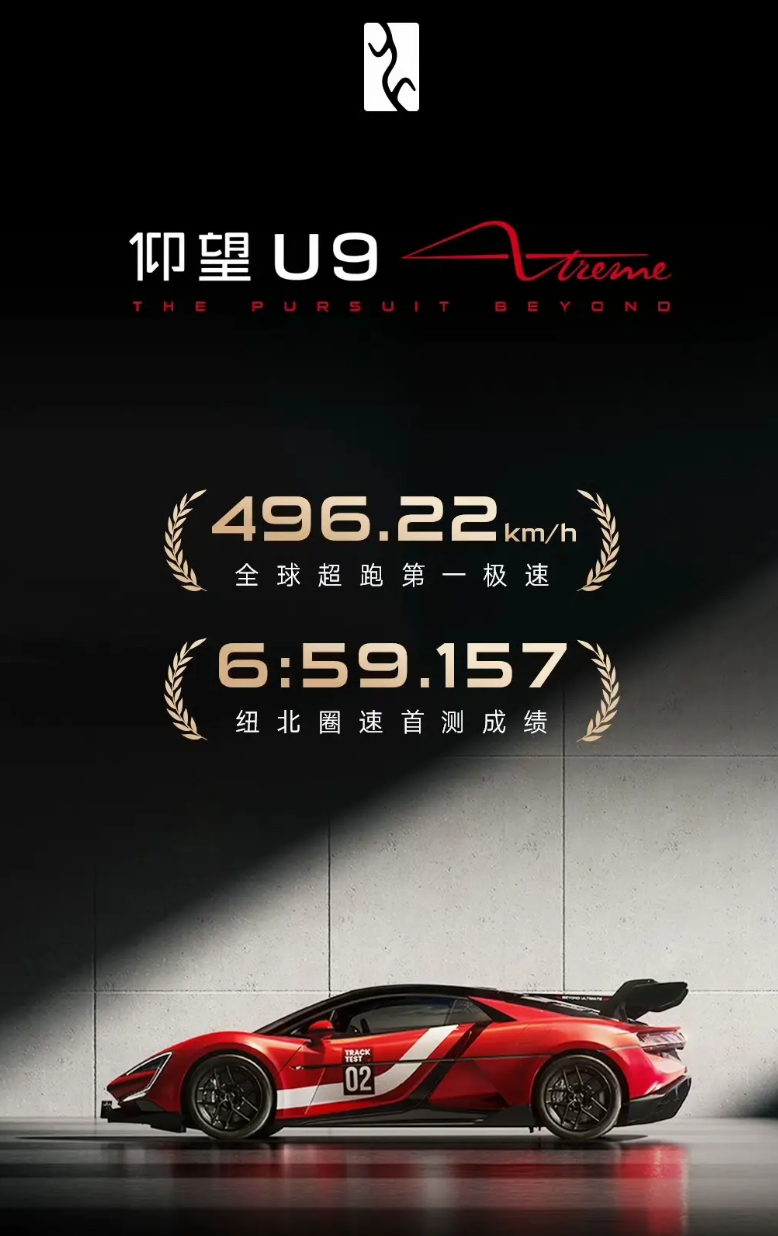 现在可以看到比亚迪400亿研发的冰山一角了。自古以来,极速跟圈速不可兼得,因为极速,要求空气阻力不能太大,所以要适当的减少下压力。而圈速呢,整条路到处都是弯道,走不了几步就得转弯减速,所以要适当的增加下压力,否则车子就飘了,极速上300多就可以了,前不久创造了电动车圈速记录的小米SU7 ultra就是这样,他的极速也就360。 但是偏偏比亚迪既要还要,没办法,技术先进就是可以为所欲为,就是可以这么任性。现在仰望U9x dream,已经同时创造了496.22的极速,和7分以内的圈数,已经远远超过了小米当初的水平,说明技术不是一个维度的。而且这只是阶段性成绩,一定还有更好的成绩可以创造。奇怪的是,目前世界上还没有同行出来致敬的。