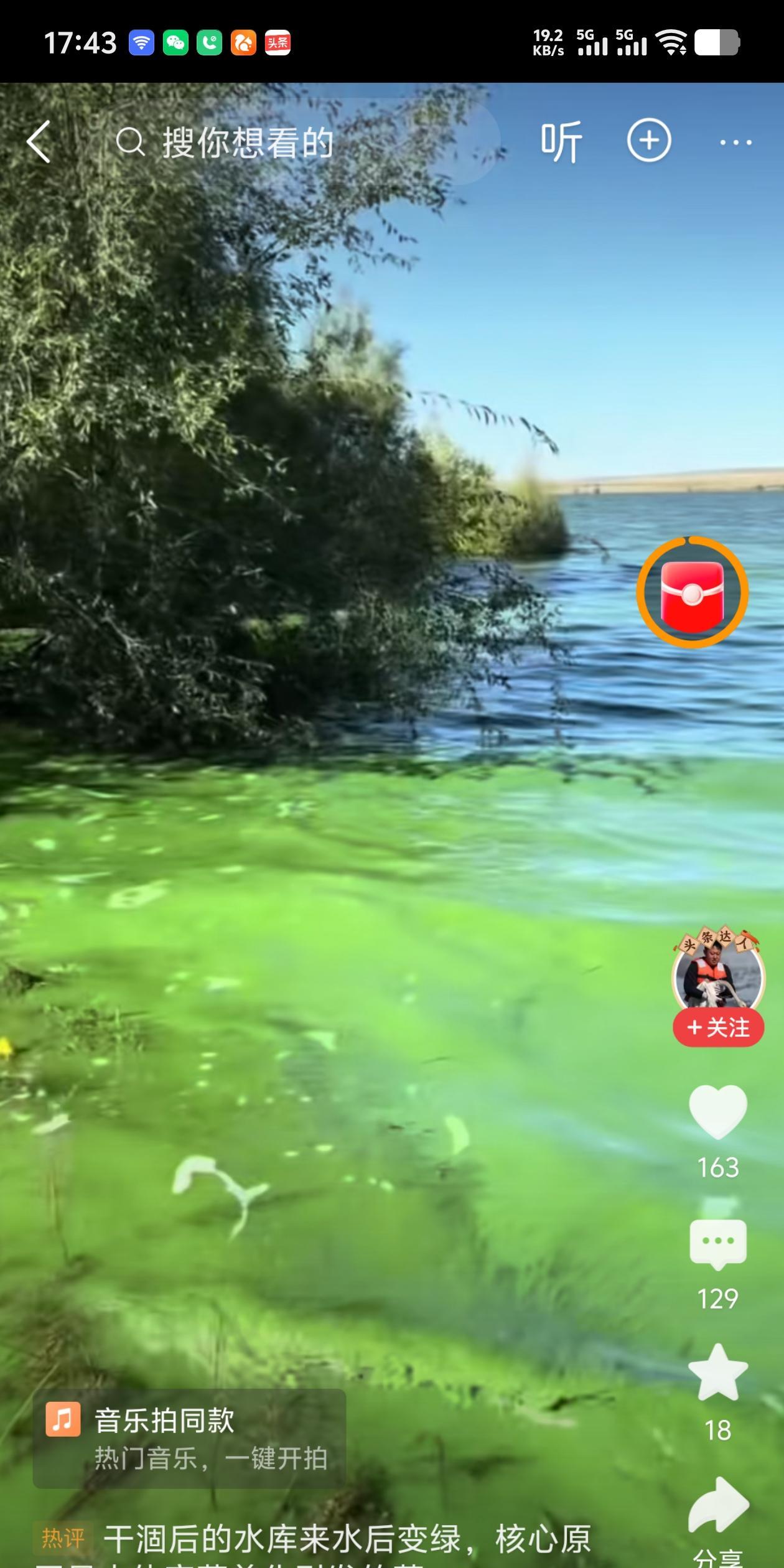 水库的水绿成这样, 怎么看着有点恐怖呢!