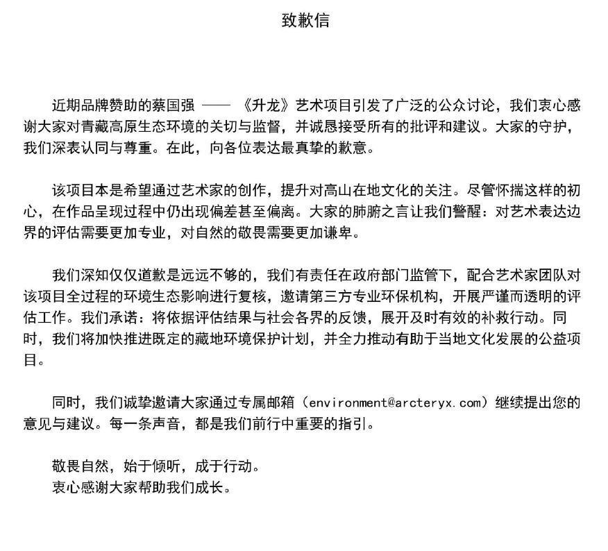 前天,户外品牌始祖鸟邀请艺术家蔡国强,在西藏海拔五千多米喜马拉雅山脉中,燃放艺术烟花,因烟花中含有大量化学成分,疑似破坏和污染了喜马拉雅山脉的自然环境,遭到网名一面倒的挞伐。据说这个艺术作品的名称叫生龙。始祖鸟宣称是单纯商业行为,但却以破坏大自然为代价,如果说他们手续合规,那是生态环境保护彻底地败给了资本。每个地区都有它一固有的微生物搞出这样大的动静,不知要惊吓死多少微生物,还有当地的动物,从此鸟类也不敢再来这个地方。再有,材料在低温降解不了,重金属残留会渗透地下污染水源,搞死动植物低温植被是千年长起来的,烧了恢复不了。小动物们的家被炸。这跟丢个生化武器搞破坏有啥区别。