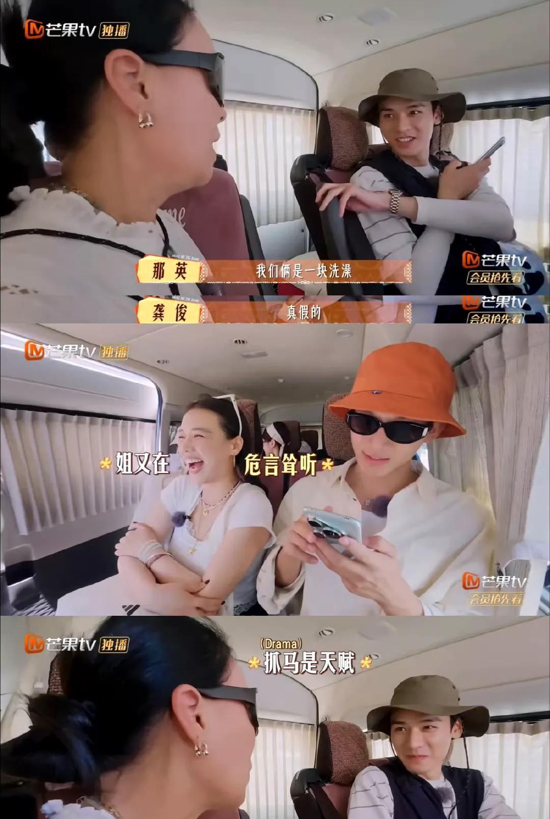 张晚意这脑回路也是没谁了, 好好的聊天, 他一句话就能给把画风带偏了! 综艺笑果杠杠的! 花少团结束行程回酒店途中, 那英问马思纯:“洗澡还是直接倒床上睡?” 马思纯:“你怎么想?” 她俩这时聊得挺正常的! 结果张晚意突然神来一句: “你俩洗澡是一块洗吗?” 马思纯故意逗他,“嗯,鸳鸯浴!” 那姐也立马接梗,“我们俩一块洗澡!” 管你信不信,主打一个危言耸听!