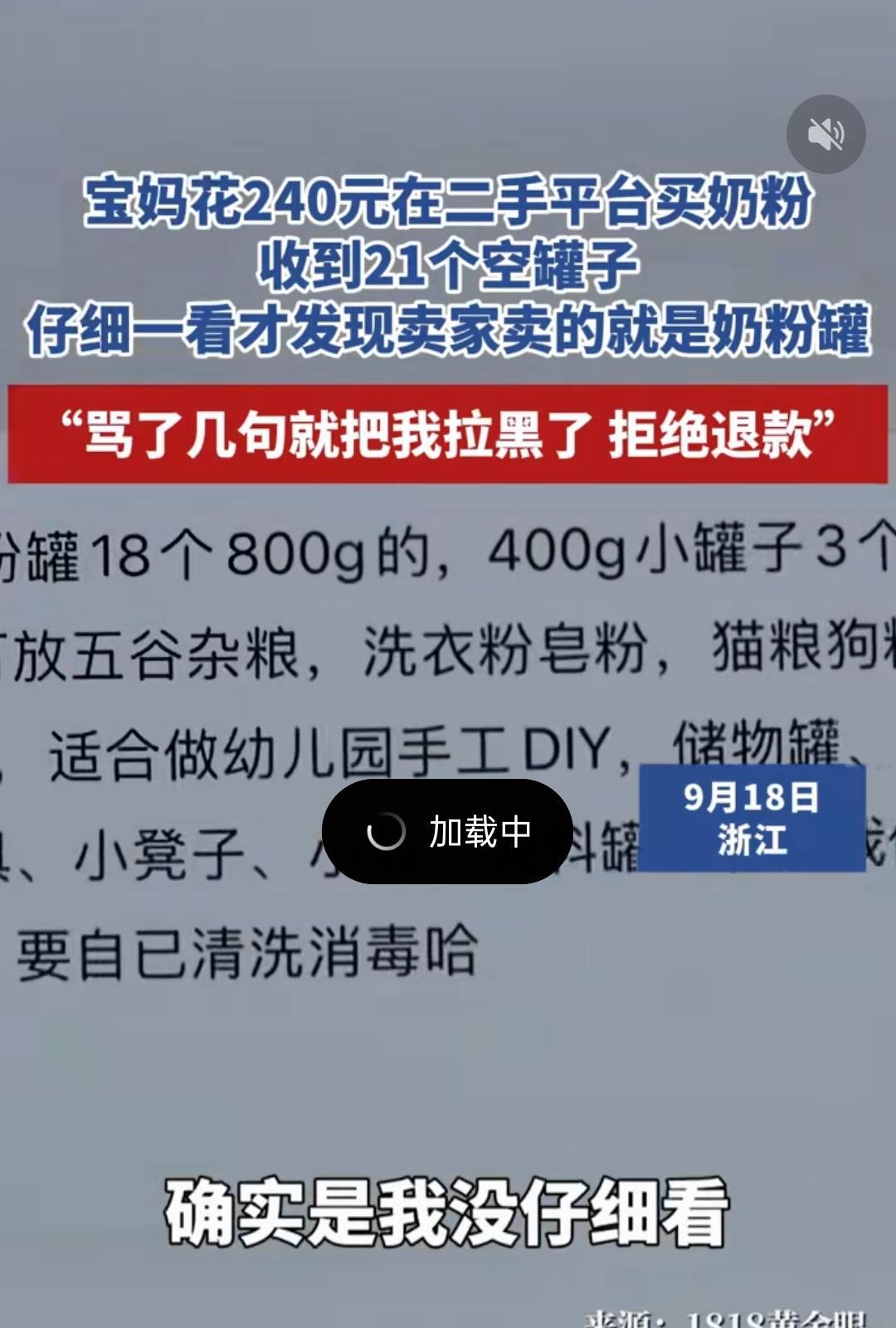 “心太大了!”浙江,一宝妈在二手平台上花240元给宝宝买奶粉,不料收到货却发现卖家寄来的不是奶粉,而是21个奶粉罐,女子感觉自己上当受骗了,当即把卖家臭骂了一顿,要求退款,但卖家却执意认为是女子有问题,自己卖的就是奶粉罐! 潇湘晨报9月20号报道,张女士家养娃开销不小,光奶粉钱每个月就得一千二往上,这让她总想着能在奶粉上省点钱。 后来嫂子跟她说,在拼多多或者二手平台搜奶粉,能找到比平时便宜的。 张女士从没在闲鱼,拼多多这类平台买过母婴用品,可一听说能省钱,又想着孩子长期要喝奶粉,就动了尝试的心思。 9月3号那天,张女士在二手平台翻到了德国喜宝的链接,看见拼多多都要卖两百七十多一罐的奶粉,这里只卖两百四十块,一罐就能省三十多。 她心里算了笔账,要是一直按这个价买,几罐下来就能省出一两百,能给孩子添点别的东西。 她赶紧问卖家是不是正品,卖家说都是正品,张女士更着急了,怕错过这个价,直接跟卖家说“还有多少罐,正品的话我全要了”。 卖家接着问“小罐子也要吗?”,那时候张女士满脑子都是买到便宜奶粉的划算,根本没细想“小罐子”指的是什么,只当是卖家问要不要小规格的奶粉,觉得卖家考虑得周到,当下就下了单。 9月6号,张女士兴冲冲地去取快递,拿到手却觉得不对劲,就一罐奶粉,怎么会是这么大的箱子? 拆开箱子的瞬间,她整个人都懵了,里面没有盼着的奶粉,全是空的奶粉罐子,数了数,一共21个,18个是800克的大罐,3个是400克的小罐。 她当时就慌了,心里直打鼓:“我明明买的是给孩子喝的奶粉,怎么发来的全是空罐子?” 张女士第一时间找卖家理论,说自己要的是能喝的奶粉,不是这些空罐子,要么让卖家补发奶粉,要么就退货退款。 卖家回复自己卖的就是奶粉罐,这一点在她的商品信息上写的明明白白。 这时候张女士才后知后觉,才发现自己之前太着急,没看商品信息就下了单。 可她又觉得自己的想法没问题,两百四十块钱,正常人谁会去买21个空奶粉罐? 她还特意去平台上搜了空奶粉罐的价格,大多是四五块一个,最多也就六块,按这个价算,21个罐子撑死也就一百多块,卖家定两百四十块,这价格明显不合理。 两个人越说越僵,张女士急得没忍住,骂了卖家两句,结果卖家直接把她拉黑了,退款的事也没了下文。 张女士又气又急,只能向平台投诉,希望平台能帮自己解决。 平台接到投诉后,启动了“小法庭”机制,找了17个网络评委进行内部审理。 有15个人都支持卖家,商品信息标注的很清晰,并且平台是根本不支持奶粉进行二手交易的。 最后平台按评审结果,把货款打给了卖家,但考虑到张女士的情况,还是补偿了她120块钱。 可张女士不接受这个结果,她还是想找卖家把问题解决了,哪怕自己承担寄回空罐的运费,也要退货退款。 后来她也慢慢意识到自己没看清楚商品信息有错,还主动给卖家道了三次歉,可卖家根本不接受,还说“我标两百四十块是我愿意,你愿意买是你自己的问题,我没任何错”。 记者也试着联系了卖家,卖家只说平台已经有裁决结果了,让记者别再骚扰他,还说“不是每个人都是闲人”,不愿意多聊。 其实这事里的价格挺让人琢磨的,两百四十块钱不管是买一罐德国喜宝奶粉,还是买21个空奶粉罐,都不太合理。 买奶粉的话,这个价格虽然比原价低,但二手平台本就不允许卖奶粉,奶粉的来源和安全都没保障,给孩子喝太冒险。 买空罐子的话,又比市面上的均价高不少,很难让人觉得划算。 不知道大家怎么看这个价格,又怎么看待这场因为没看清信息引发的纠纷?