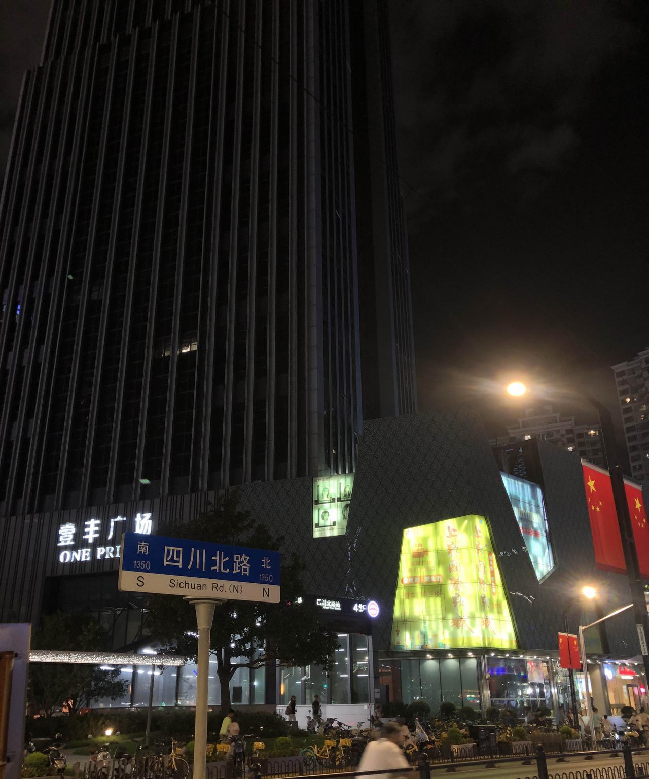 虹口区四川北路十字路口,夜色依然缤纷。然而你在路口的感觉多半觉得是一股浓郁的县城气息。高楼大厦的泛光照明是非常土气的五颜六色,一个老龄化非常严峻到虹口区,居然商场巨大霓虹向young而生!结果这个巨大灯牌的底下挤满了一堆五十六十岁以跳广场舞健身为名肉体紧贴暧昧缠绕的大爷大婶!而夜色里几乎没有年轻人。果然,老年男女在“向young而生”!荷尔蒙还在飞扬,年轻是当然的。