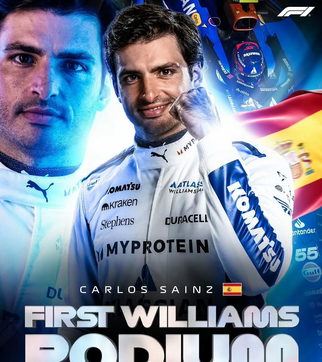 阿塞拜疆大奖赛结束,维斯塔潘实现Pole-to-Win,本赛季第四胜,职业生涯第67胜。再次拿到大满贯(夺冠、杆位、最快圈、领跑每一圈),职业生涯第6次,追平汉密尔顿,仅次于克拉克,历史排名第二;职业生涯第16次领跑每一圈。 梅赛德斯双车进入前四,拉塞尔收获亚军,安东内利第四! 塞恩斯收获季军,代表威廉姆斯首次登台,也是威廉姆斯时隔1484天重返领奖台。 劳森拿到最好成绩第5,在最后阶段顶住红牛、迈凯伦和法拉利的进攻。 角田第6,红牛生涯最好成绩。 诺里斯拿到第7。 接下来来是两辆法拉利,汉密尔顿第8,勒克莱尔第9。 小红牛也实现双车积分,哈贾尔第10。 皮亚斯特里首圈在6号弯撞车退赛,赛前车队刚刚为他更换了新底盘,而他在打车阶段抢跑被罚时5秒,但由于他已经退赛,罚时将变为下一站新加坡大奖赛的3位罚退。