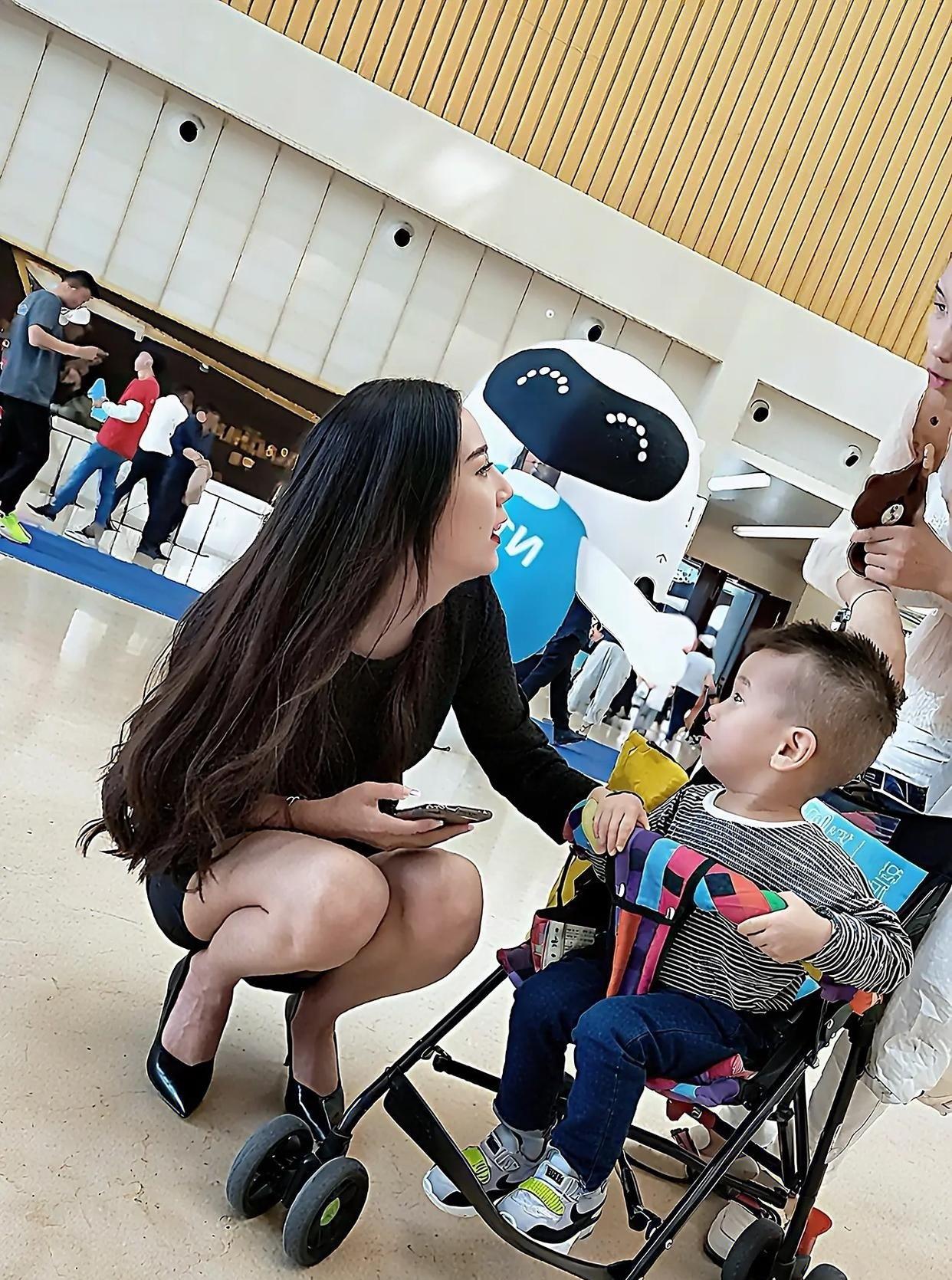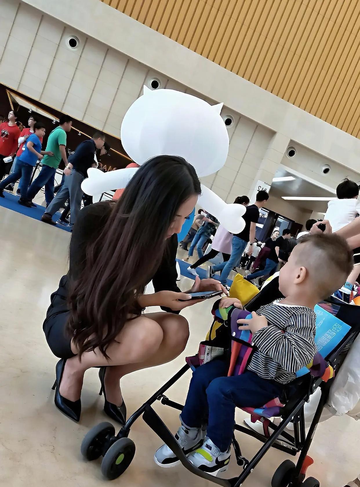 这位漂亮性感的美女 是孩子的妈妈吗? 在商场看到一辆婴儿车,有一位美女蹲在车旁,