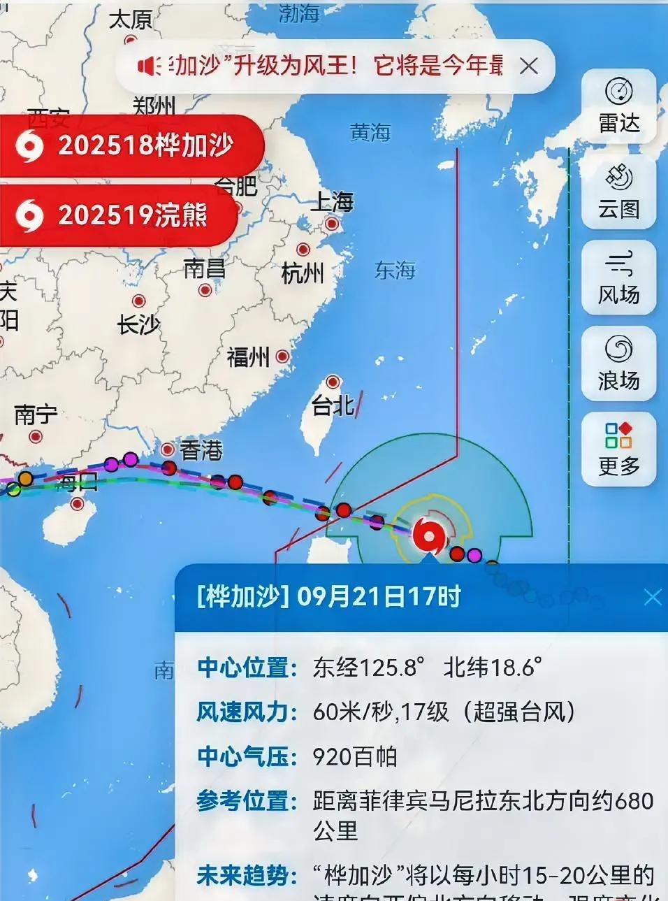 距离今年风王登陆不到三天了!18号台风的风眼十分清晰! 从来没有如此清晰的看过卫星云图的台风眼,这就是今年18号台风“桦加沙”,风眼异常清晰饱满,似乎蕴藏着巨大的破坏力量。还有至少两天登陆,就已经是超强台风级了!风速已经达到60米/秒,没有防护的普通人如果处在台风眼,肯定会被吹上天。 2018年台风“山竹”正面袭击深圳,场景至今历历在目,深圳街道上大量树木被吹断,不少汽车都被直接掀翻。时隔七年,又一个风王驾临,学生都在用期盼“春天来了”的念头期待“风王”到来,因为大概率周三又要放假了!
