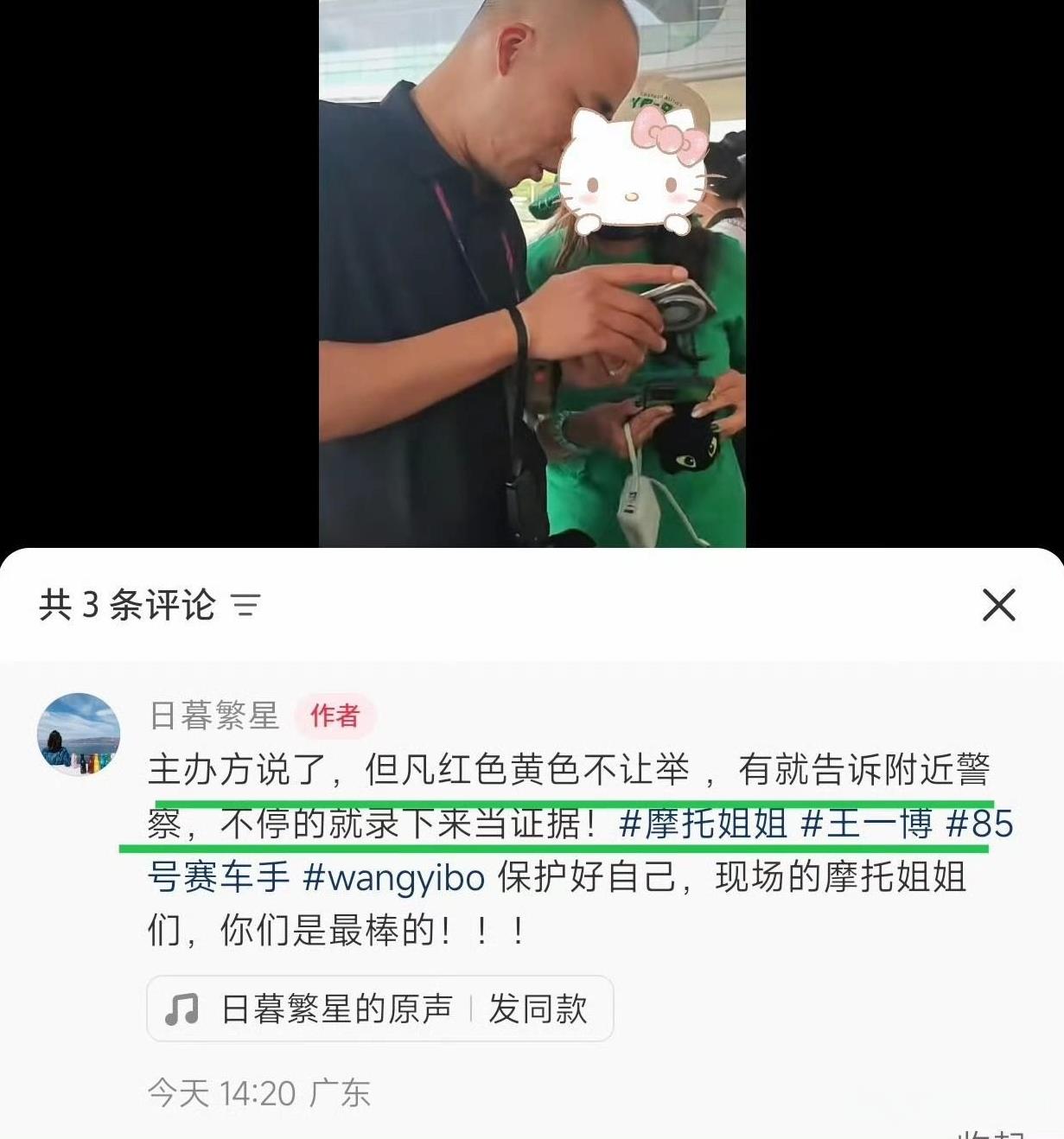 某水产就不要来王一博的赛车。 这里不欢迎她们。来干什么呢?扰乱秩序吗? 来看就看,为什么还打小孩呢?怎么下得去手的?那么小的孩子经得起大人打吗? 我真的极度气愤,喜欢某些人明星,让你们连做人的底线都不要了吗? 王一博赛车比赛不允许出现红色和黄色的应援物。出现就收走。不是说说而已,是真的。这里不欢迎她们。 别来!!!