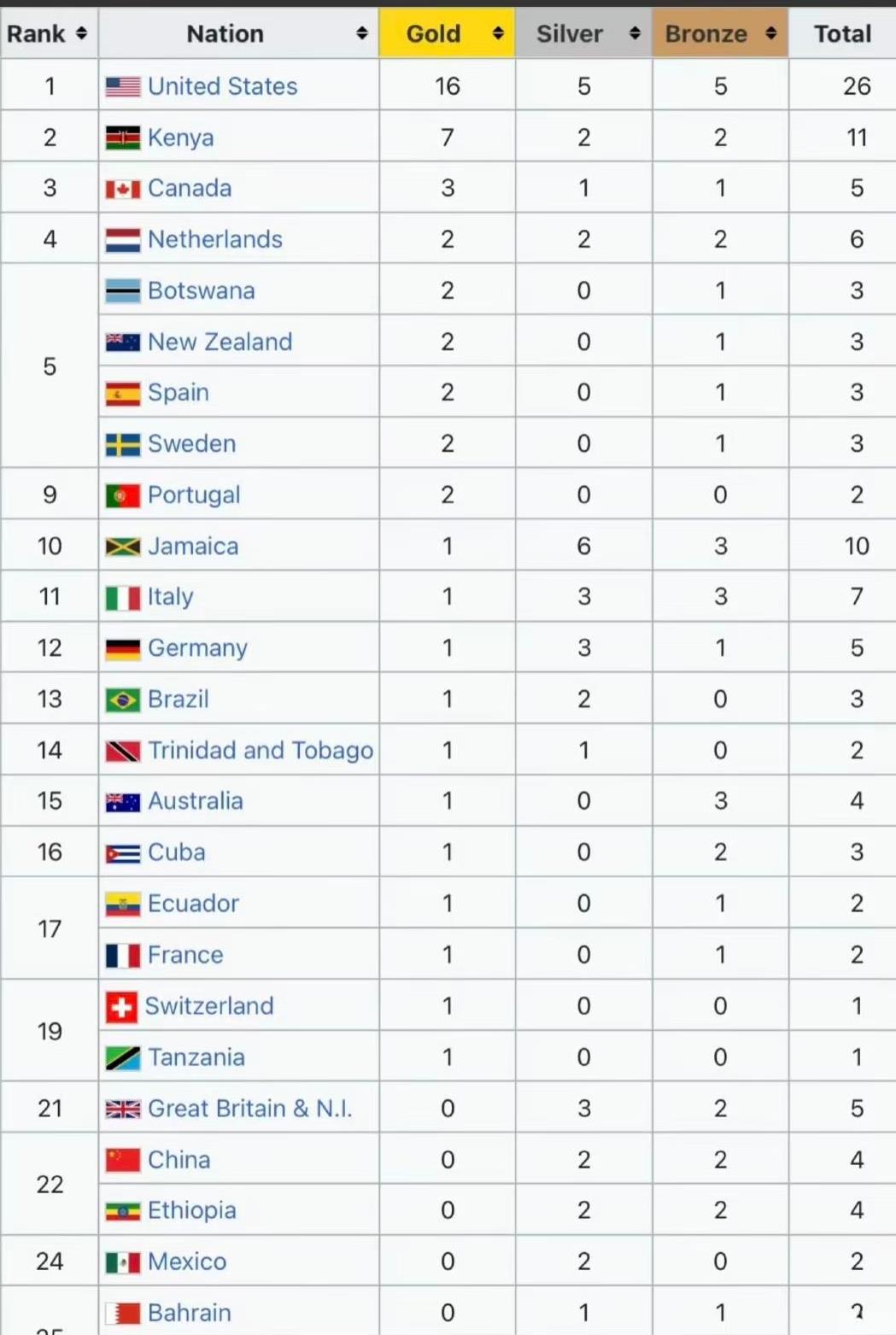 田径世锦赛大结局:美国第1,中国第20!3个事实不得不说! 第一,我们田径仍是亚洲第一,虽然只有4枚奖牌,但强于日本和韩国! 第二,我们与体育强国的差距在田径,因为田径强则体育强,我们的田径要是起飞了,奥运会奖牌会是妥妥的第一! 第三,大鹅如果参加比赛,他们会是第几呢? 大家怎么看?