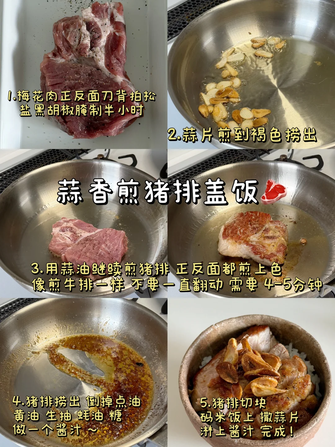 蒜香猪排盖饭🥩🧄🧈做法附图!