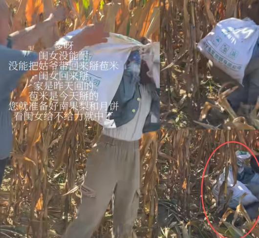 笑死我了[捂脸]—刚看到个神评:弟弟家中藏,女婿地里忙,偷偷亲一口,姑爷比驴强[捂脸]!辽宁,90后闺女吐槽:“爹啊,我没能耐,没能把姑爷带回来,家里苞米我给你掰,就看闺女给不给力就中了!” 结果小半袋子的苞米,还要老爹帮她扛到肩上,嘴里喊着123走起…!老爹的预期是闺女扛起来就跑,结果却是刚上肩膀就耍赖,像喝了假酒,才走一步就摔倒,一屁股坐在了地上!笑得老爹嘴都咧到耳根了,也不上前帮忙,就在那站着看笑话! 没办法,家中养了3个闺女,她是老大,两个妹妹还小在上学,本来指望着她带个女婿回来,结果自己光棍一条人回来了,还信誓旦旦地和老爸保证:“准备好南果梨和月饼,看我表现就行了!”结果半袋子苞米都扛不动,只能由老爹来接受!她只能穿戴上屁股蹲,坐地上扒苞米去了! 有网友看后调侃:“瓶盖都拧不动,还想扛苞米?” 也有网友看后捂嘴笑:“我不敢笑,我爸真有30亩地,种的都是玉米[泪奔]!” 扒过苞米的都知道,苞米叶子是真拉人啊,一柳子一柳子的,看看这闺女的装扮,长腿裤,长袖牛仔,还戴手套、包头巾、戴口罩,连眼睛都护上了,可以说是全副武装。 网友都吓坏了:“不是看到玉米地,你的打扮我还以为你是打劫去里[呲牙]!” 还有网友问:“屁股上挂个桶是啥意思?” 那不是桶,那是屁股蹲,跨在腿上能直接坐地上的,方便实用! 不得不说,这套装备下来,扒苞米的速度是真快了!可再快也不如找个对象啊,那真是免费的苦力啊! 有网友直接吐露了自身经历: “真被这么骗过,上班的时候有个女同事挺好看的,然后一直聊天,偶尔吃个饭,直到放假,她说她家里人想看看我[捂脸][捂脸][捂脸],结果…!” “一看这个就来气,处了4年对象,扒了4年苞米,装了4年车,种了4年地,晒黢黑,累得腰都直不起来,结果黄了[捂脸]!” 张炜在《钻苞米地》里写道:“庄稼人把玉米当孩子养,从萌芽到结果的每一滴汗水,都藏着对生活的热望!”闺女嘴上说着“没能耐”,却用最大的努力想把农活的压力扛在肩上! “人间烟火最抚人心”,不管是调侃的姑爷的当驴使,还是全家齐上阵的热闹,其实都是家人“有人分担”的期盼,累的时候有人搭把手,笑的时候有人一起乐! 哪怕是扛半袋子苞米就摔个屁股蹲儿,父亲也会在旁边开心地笑着——这才是生活最真实的温暖,也是普通人最最平凡的幸福。 你有过“女婿”扒苞米的经历吗?评论区分享一下!