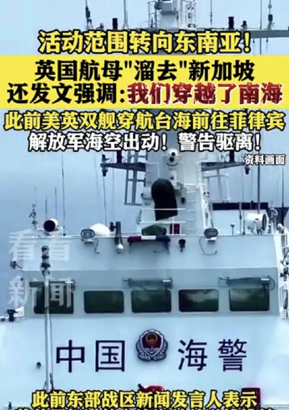 解放军发出严正警告后,英国航母从南海“溜了” 9月21日,英国航母打击群的社交媒体账号发文称:“穿越南海后,我们很高兴重返新加坡。” 英航母南海“低调过境”,昔日海上霸主难掩实力落差。 而一些英国媒体早前曾高调预告,称英国航母将穿越台湾海峡、“挑战过度海洋主张”,甚至宣称“威尔士亲王”号航母凭借五代舰载机优势,可“以一敌二”,压制中国的辽宁舰与山东舰。 这不是偶然,而是实力的此消彼长带来的必然结果。曾经依靠炮舰外交横行四海的时代已经一去不复返,如今的中国海军有信心有能力捍卫国家的蓝色国土。 说实话,英国这个跳梁小丑真不知天高地厚,他还以为自己是百年前的英国?紫英石号的下场,他们忘记了?#南海舰队的驱离# #英国台海挑衅#