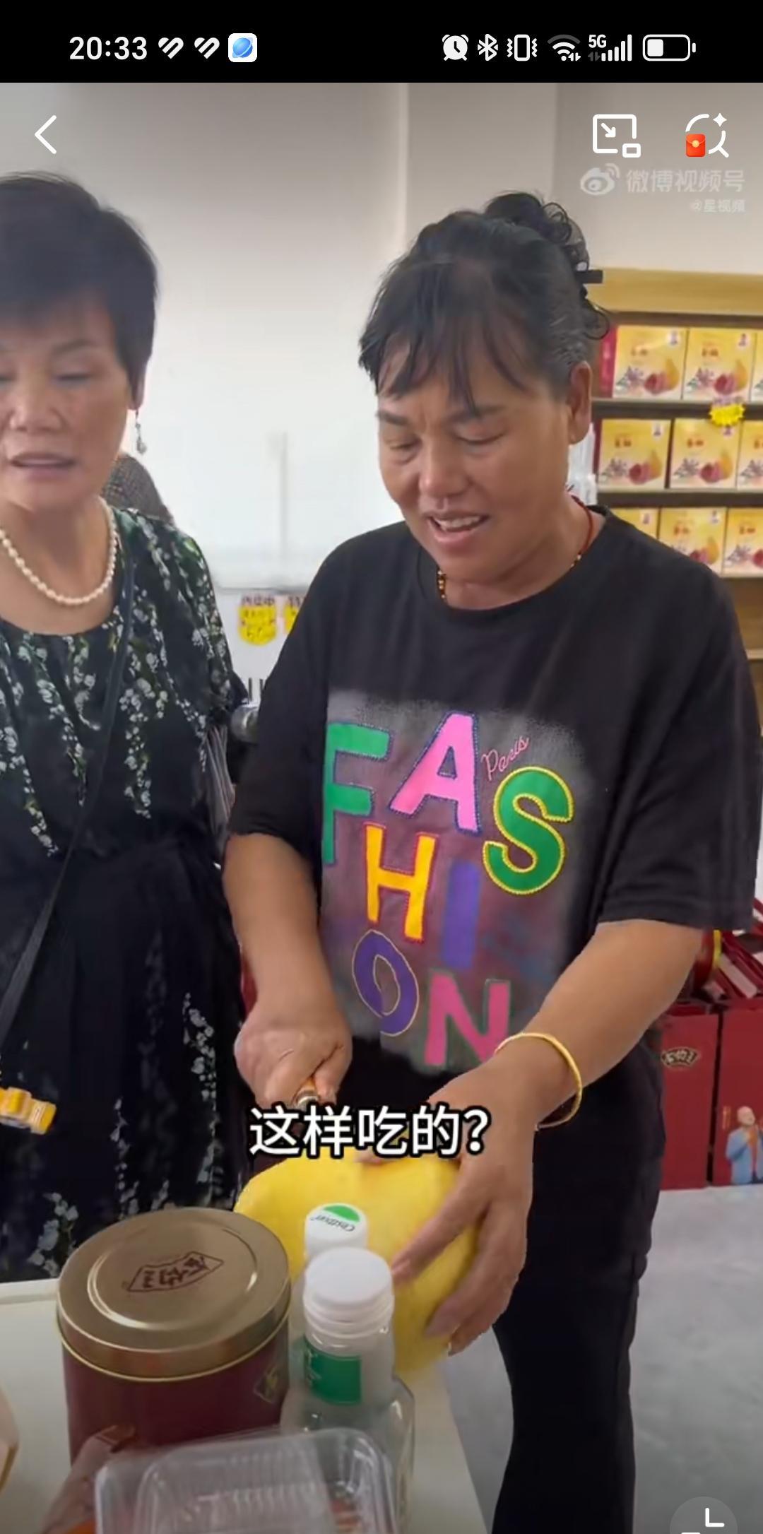 9月21日全红婵妈妈戴着大金镯子和黄金项链在自己家新开的店给粉丝发水果。别的不说