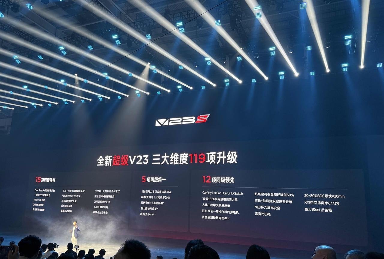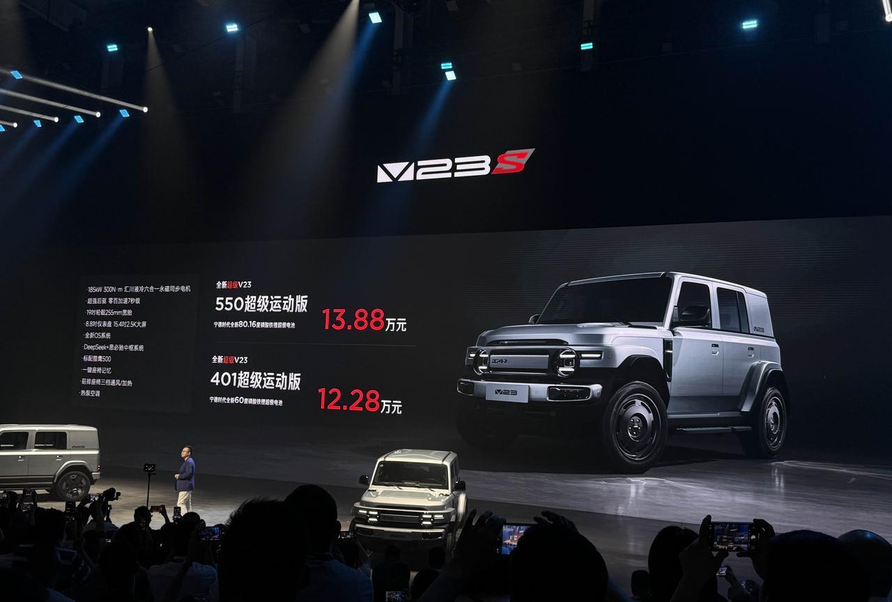 座舱方面iCAR全新超级V23的提升也还是比较大的,首先新增了8.8英寸液晶仪表 + 15.4英寸车机屏幕,骁龙8155的车机芯片,前排 + 前风挡双层隔音玻璃,前排通风加热,车内有220V电源口,脚踏、外后视镜都做了加宽,全车6个安全气囊,全系配备猎鹰500辅助驾驶。 总共提供3个版本:401超级运动版、550超级运动版、501巅峰性能版S。 401超级运动版:12.28万 550超级运动版:13.88万 501巅峰性能版:15.48万 怎么样,这价格你们买不买?[开学季]