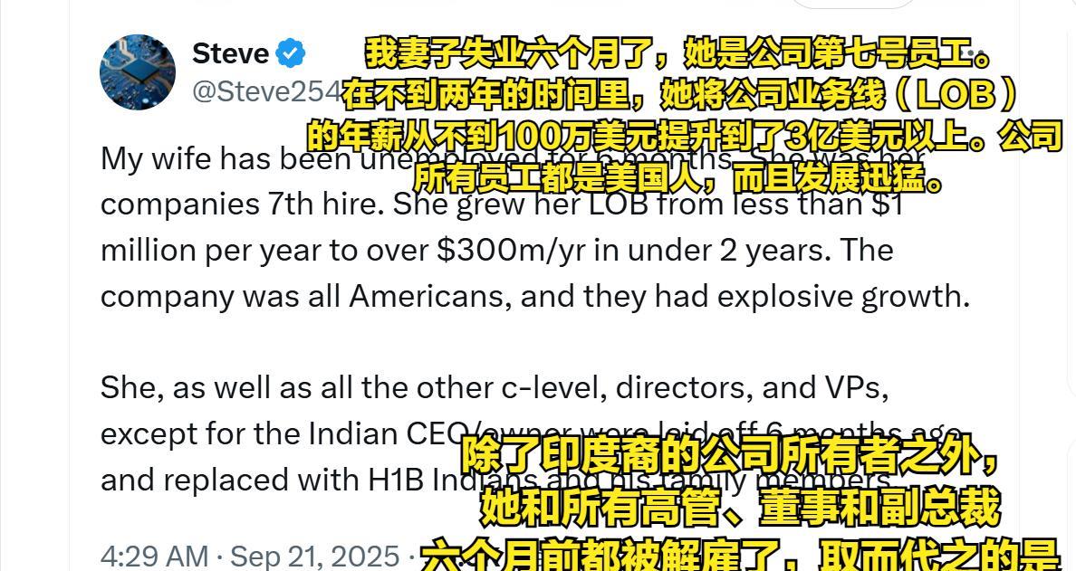 哈哈美国人现身说法,为什么特朗普要给H1B签证加价100倍费用。 H1B签证,大