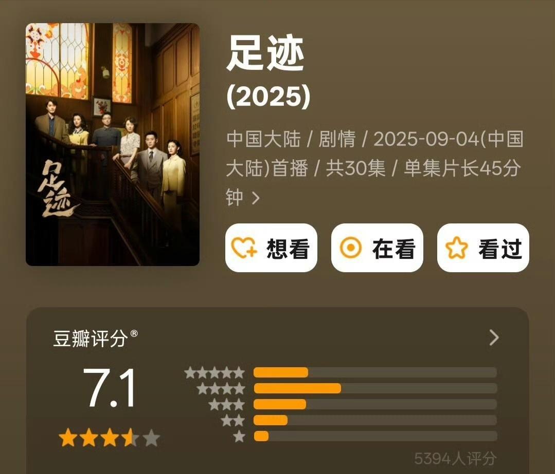 三部新剧豆瓣开分: 1.童瑶、丞磊《足迹》7.1,打分人数五千多。 2.杨旭文、
