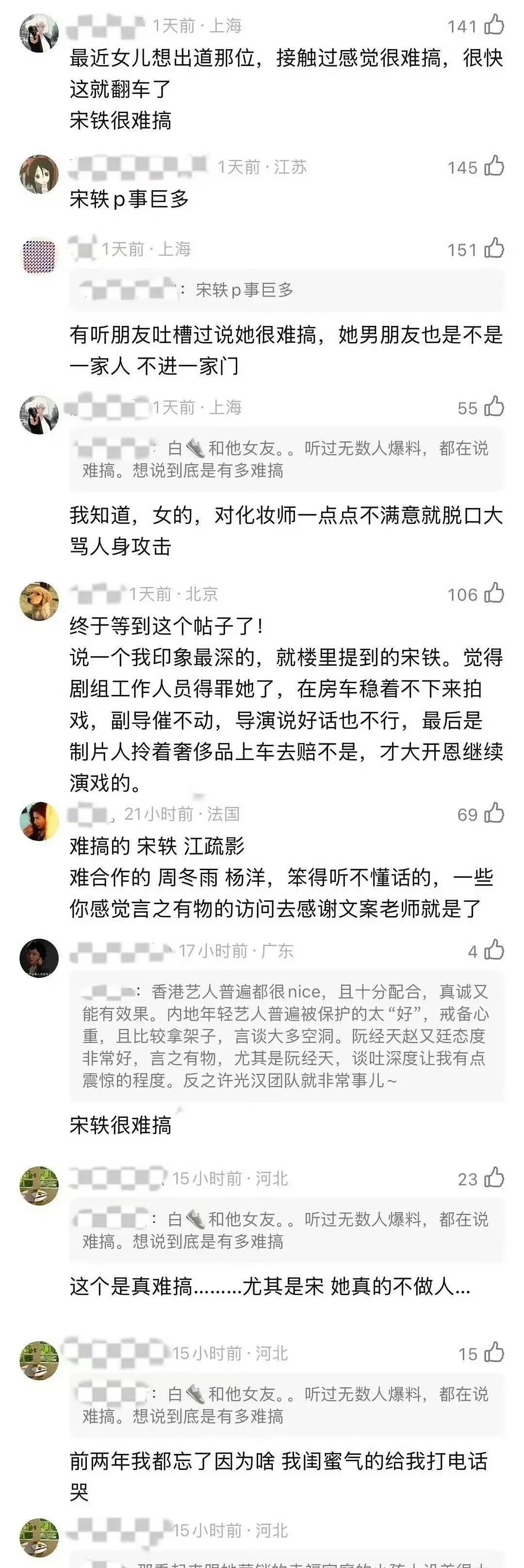 疑似业内人士爆料宋轶“难搞、耍大牌”?工作室火速辟谣否认!据有多名网友自称业内人