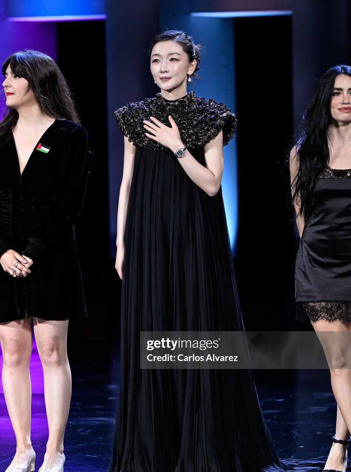 周冬雨终于穿对衣服了! 可惜如踩高跷般的鞋跟出卖了她。 最近周冬雨忙着在圣赛巴斯蒂安电影节当评委,从现场两张图片来看,周冬雨这次一黑一白两套长裙都选得不错! 白色长裙显得优雅,黑色长裙端庄。 不过这两套裙子,全靠脚底那双厚厚防水台的高跟鞋撑起来的。 周冬雨在下楼梯的时候,提起裙摆,露出高高防水台的高跟鞋。 不少网友看了都非常担心,穿这么高的鞋子,万一摔倒了怎么办?即使不摔倒,也很容易崴脚吧? 其实周冬雨的脸还是很能扛的,眼神也很坚定犀利,颇有点巩俐当年的风范。可惜身高是硬伤。 不过身高不够,鞋子来凑。 周冬雨这次的打扮还是非常好看的,你觉得呢?#周冬雨#
