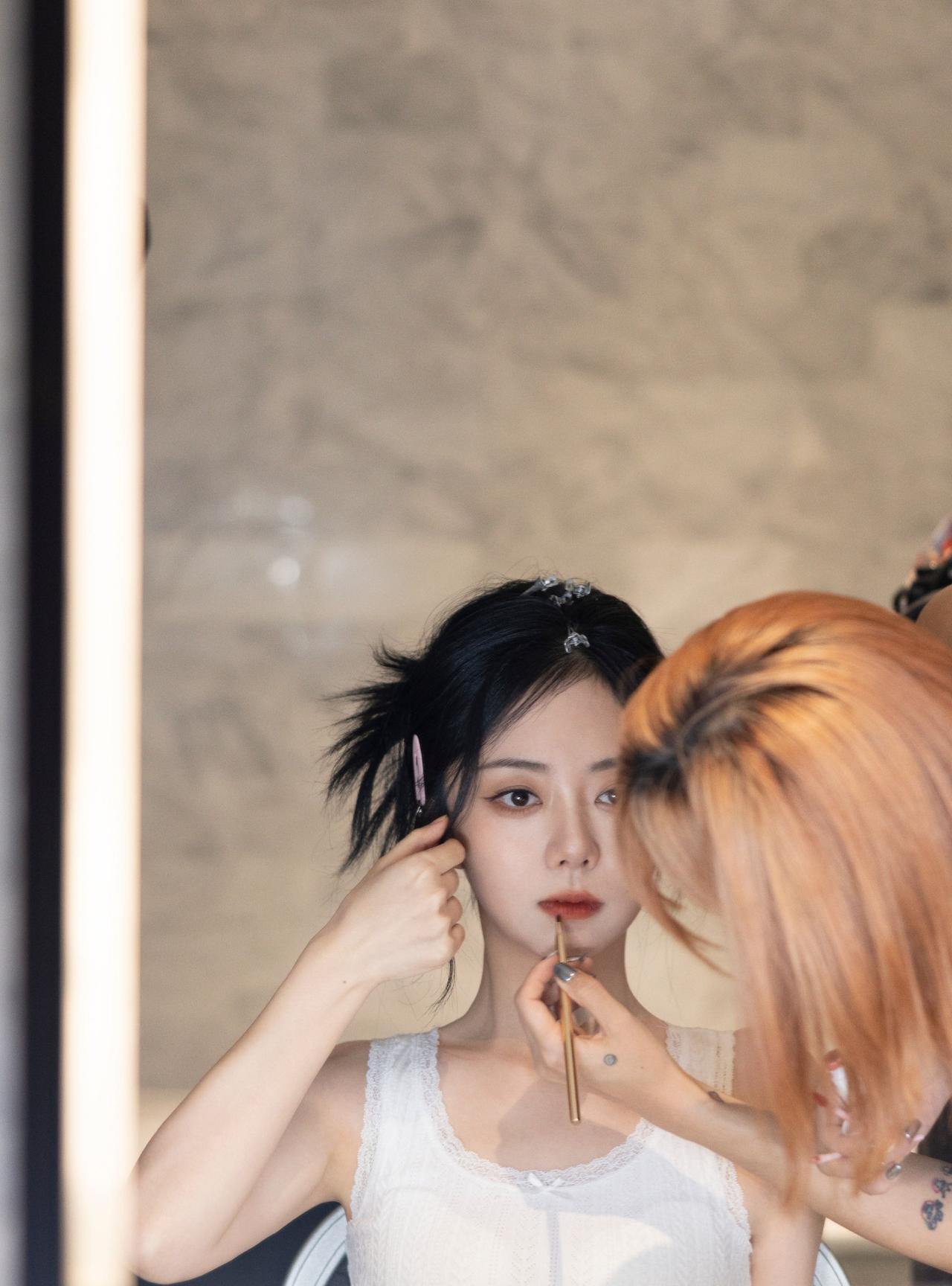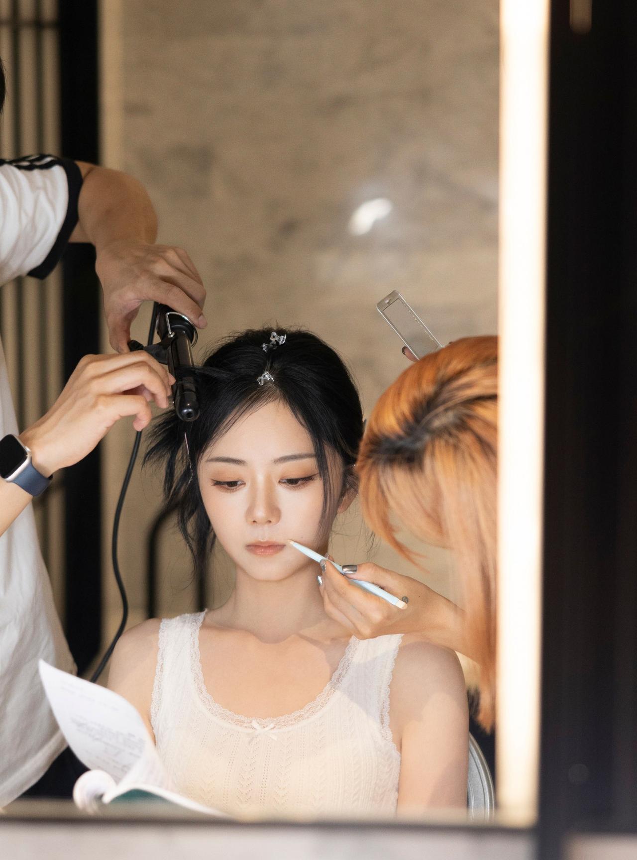 工作室小贴连放数张,谭松韵拍摄间隙的花絮图,两小姐好美好明媚,她有在发光,而且笑