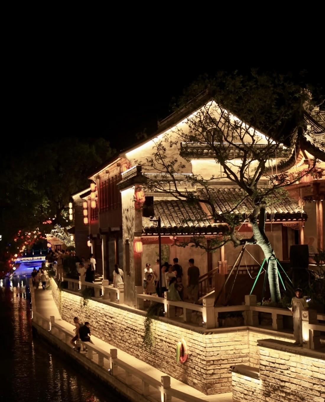 #公园的夜景随拍#夜晚的江阴忠义街,褪去了白日的喧嚣,披上了柔和的灯光。漫步在青石板路上,两旁是古色古香的建筑,小桥流水人家的景致在夜色中若隐若现。街边的小店亮起暖黄色的灯光,水乡风韵和历史与现代交融感就在这摇曳的灯火璀璨中。
