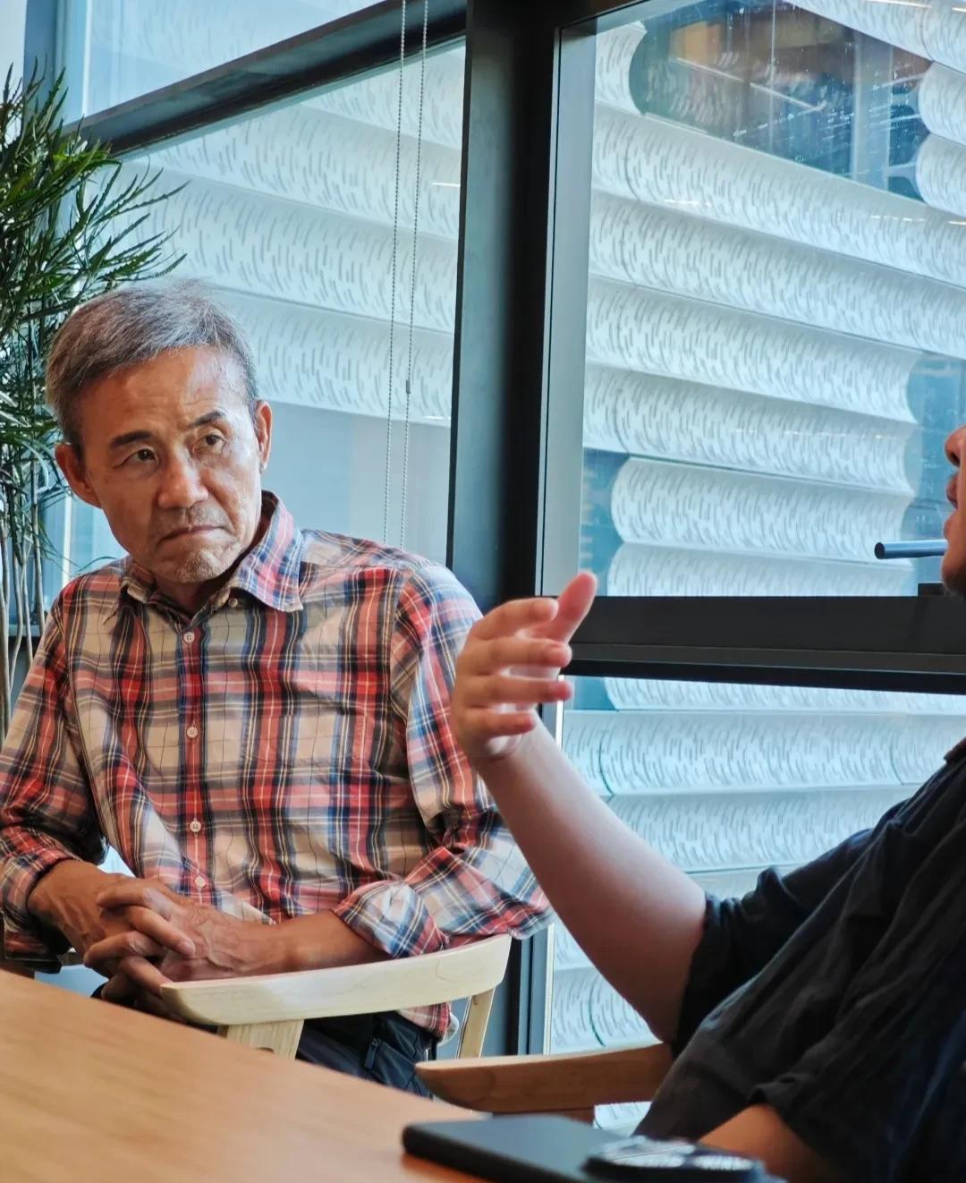 74岁的王石现身大梅沙,他穿着格子衬衫黑色休闲裤,身形很瘦,还有点弯腰驼背,肤色