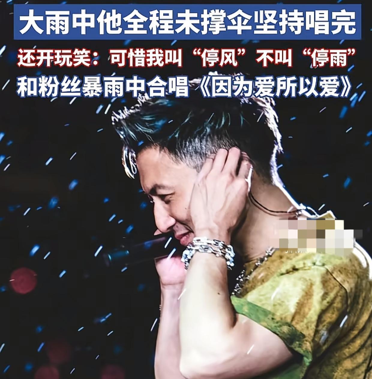 9月20日,谢霆锋在广州的演唱会上遭遇了台风突袭,现场雨下的很大,谢霆锋没有取消