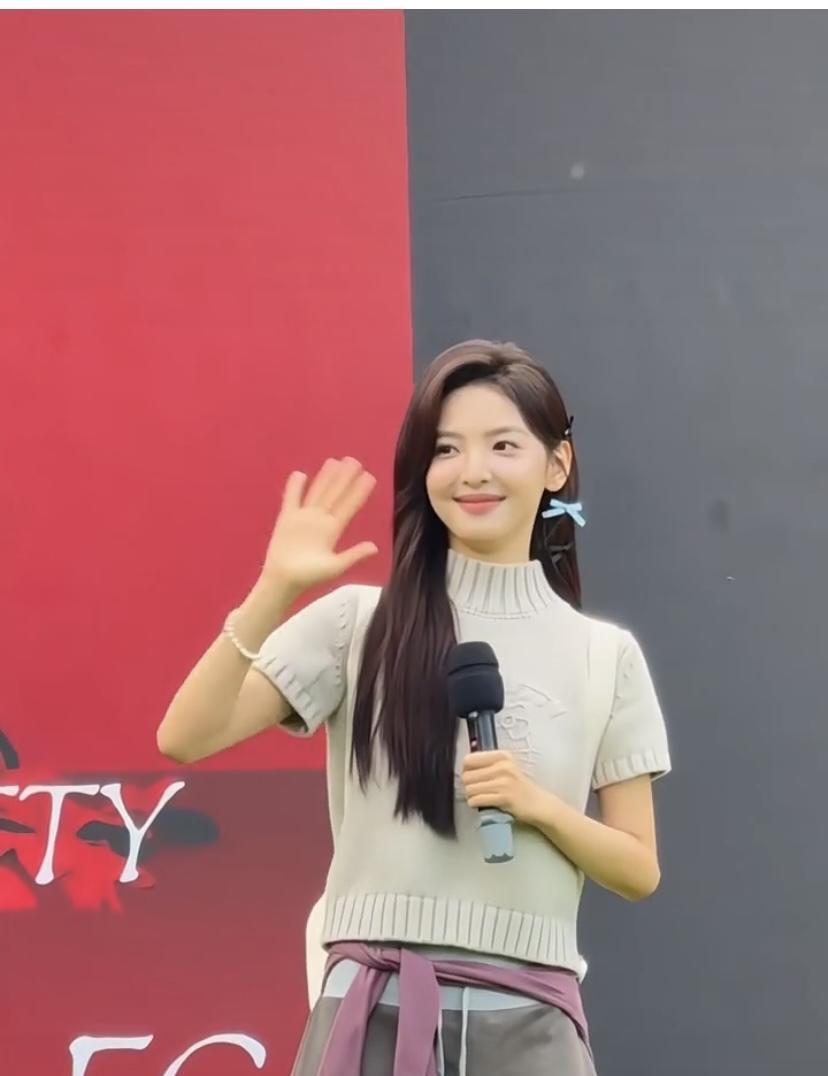 章若楠参加活动的样子每次都能狠狠吸引眼球。在《不说话的爱》校园见面会上,她真情