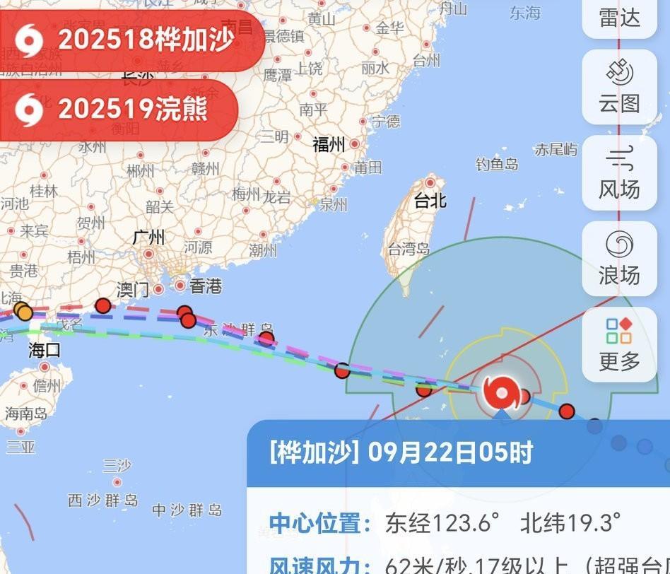 本来桦加沙登陆点是珠三角的,今天22日变成阳江了,继续往西的节奏,24日就要到了