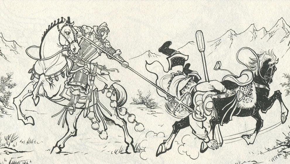 突厥元帅沙图射勇猛难挡,杨林正无计可施之时,天宝大将宇文成都请令讨战。第二天,突