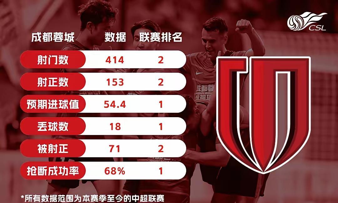 论球队实力不能仅凭感觉和好恶,看中超官方提供的数据,前24轮表现申花与蓉城确实是