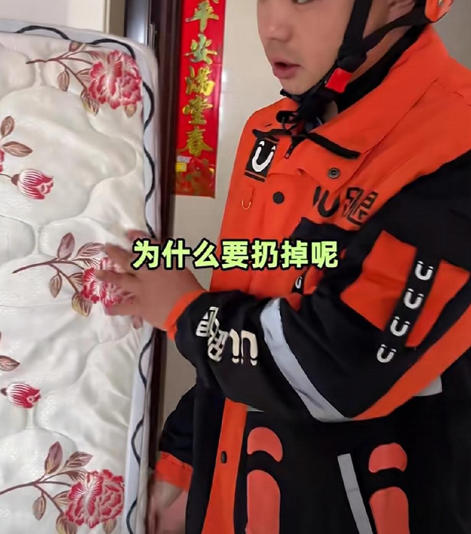 女生想捡垃圾桶旁的床垫又怕社死,于是叫来了两个跑腿小哥,结果来了一个聪明的一个不