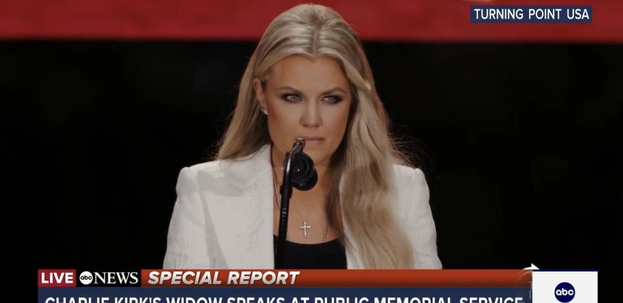 “那个年轻人,我原谅他了。” 查理·柯克的遗孀埃里卡·柯克在她已故丈夫的追悼会上