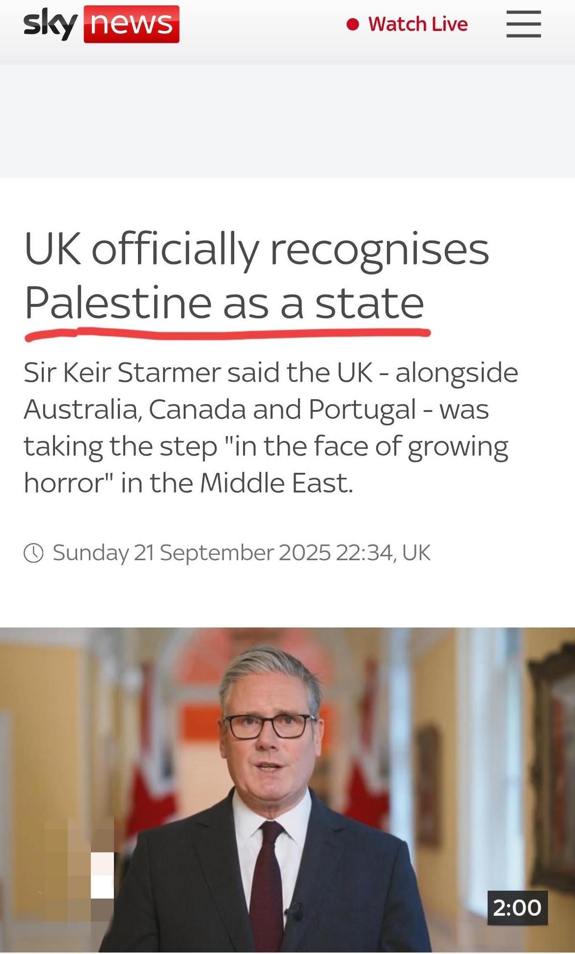 怎么英联邦国家陆续都着急忙慌地要【正式承认】巴勒斯坦建国? 以色列媒体的反应是这将引起【国际局势的海啸】,以色列总理表示这是给哈马斯一个大大的奖励。 英联邦内部大量的移民目前已经成为了他们社会的一块严重心病。承认建国后,他们或鼓励这些移民回到【应许之地】参与建设。毕竟他们实在是受不了了。