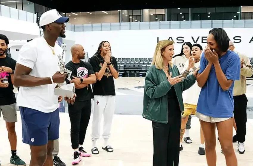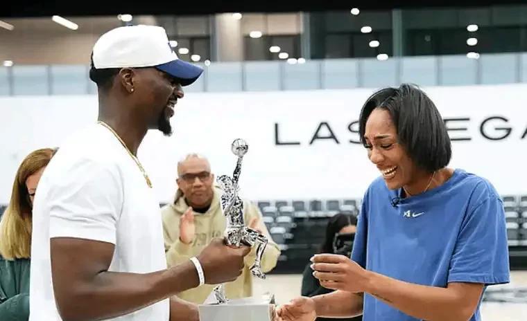 郎才女貌!美媒晒阿德巴约为女友阿贾-威尔逊惊喜送上第四座WNBA MVP奖杯
