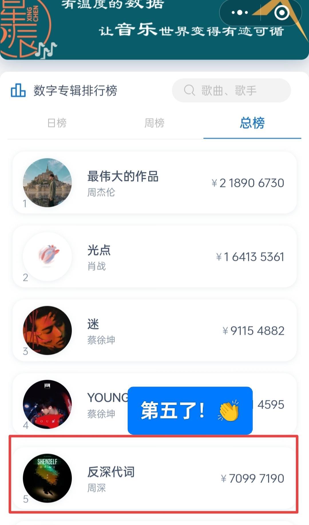 神专《反深代词》整专发布不到一年,就冲上了数字专辑排行榜总的第五位了! 第一首歌
