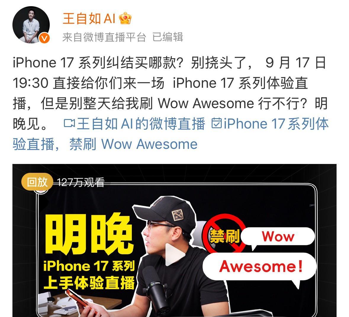 王自如说好了在AI领域二次创业,但最近几天一直在吃iPhone17系列的流量,