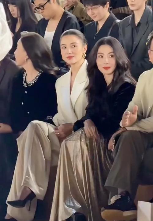 都很美!45岁张柏芝和44岁宋佳同台。 黑色丝绒西装,长发披肩,尽显优雅; 白色