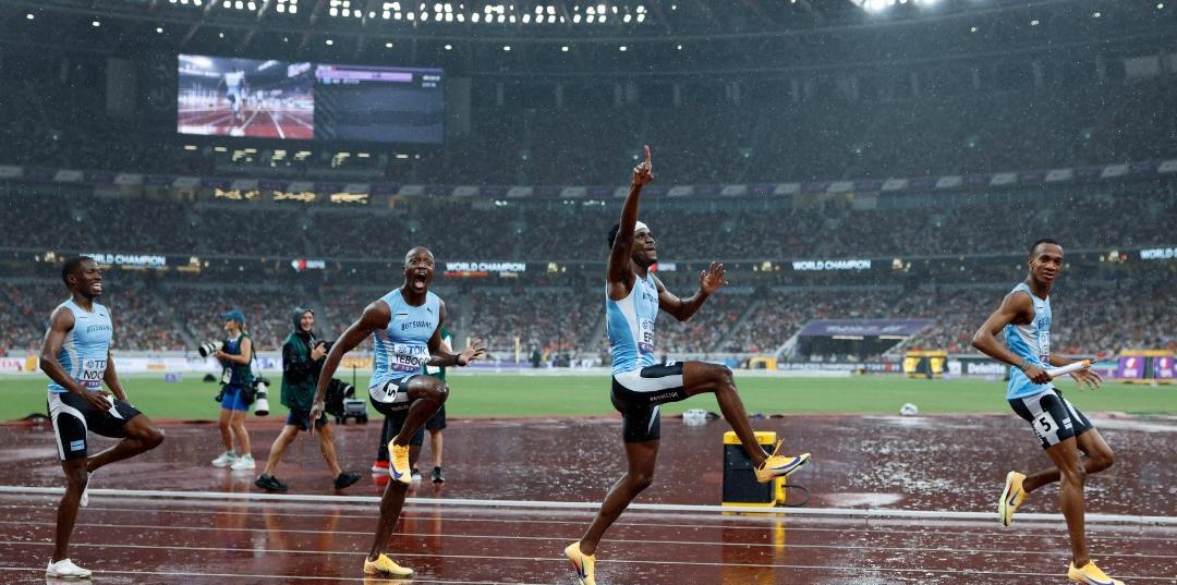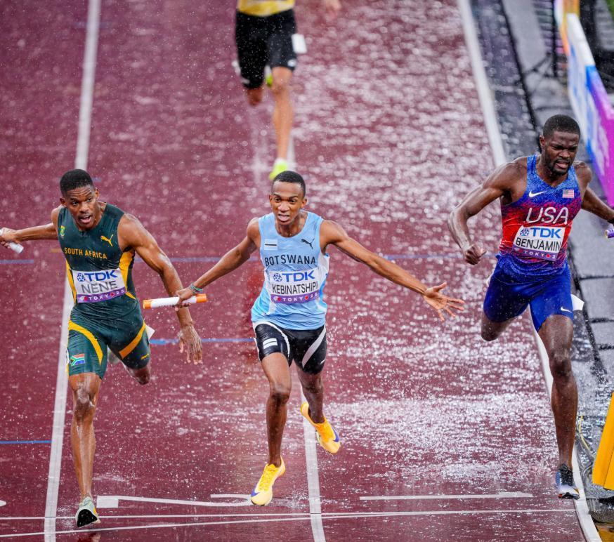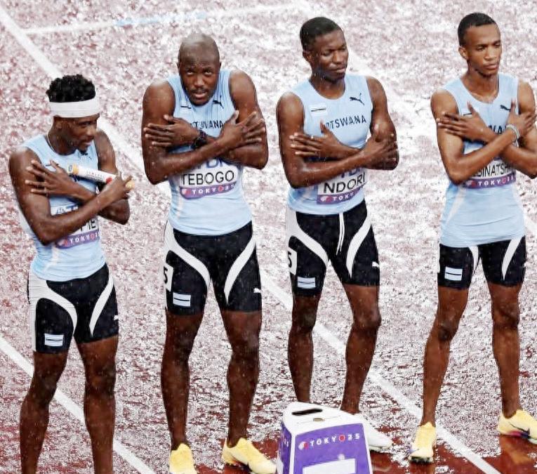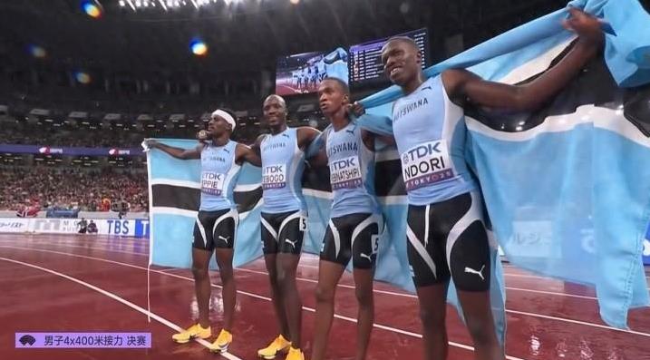 昨天在滂沱大雨中进行的东京田径世锦赛跑道上的最后四个接力项目,实力雄厚的美国队斩获三枚金牌,基本上都突破了原赛会纪录,只丢掉了男子4×400米接力一枚金牌,没办法,人口仅250万的非洲内陆国博茨瓦纳这次在400米表现太强悍了,三位参加400米单项的运动员埃普尔、恩多里和克比纳希皮全部杀入决赛,最终收获了金牌和铜牌,他们与另一位高手特博格共同组成超豪华接力阵容,在前三棒与美国队持平的情况下,21岁的400米单项冠军克比纳希皮在最后时刻强势反超美国选手本杰明,以3分57秒76的成绩、领先美国队0.07秒夺冠,为非洲队伍首次赢得世锦赛该项目冠军,也粉碎了美国队四连冠的美梦,美国队甚至差一点儿连银牌也没拿到,最后仅凭借千分位的微弱优势险胜南非队。
