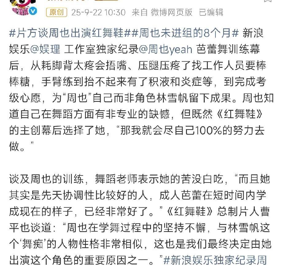 周也开拍的这部剧营销好多啊! 看得出来,团队在《锦月如歌》扑了之后,又把宝压在这部剧了。 然而网友好像并不买账。 之前营销的为了角色提前一年半练习芭蕾,被网友吐槽, 『这热搜纯粹是没苦硬吃,自我感动』 而且我个人觉得,这样的热搜放在剧播后营销比较好,现在这么高调的全方位夸夸,万一播出后口碑不好,该怎么收场呢?