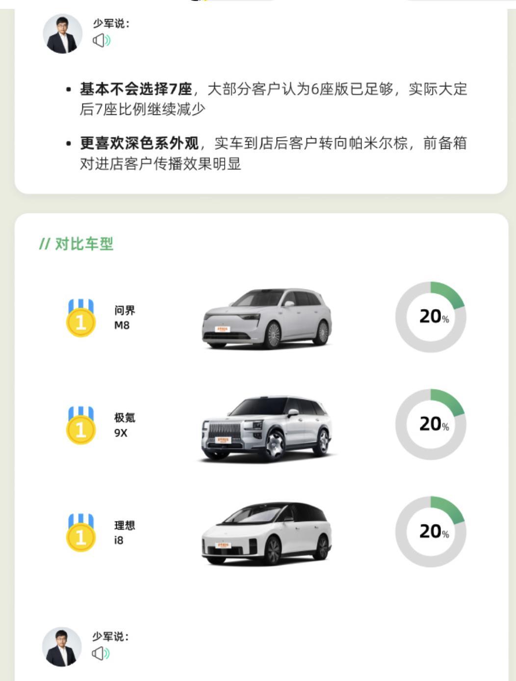为什么这次全新蔚来ES8租电占比达90%? 根据孙少军的数据 这次全新蔚来ES8的BaaS租电占比达到90% 这个比例确实太高了 以往蔚来旗下的BaaS占比一般在50%-70% 这里个人分析有以下几点原因 1,购置税,2025年的政策还是免3万元,就是33.9万以内的价格全免,超过的部分开始收 如果是买行政豪华版,40.68万元,一般选个NOMI4900元,也能省下6433元购置税。 另外如果选个外观内饰颜色,那省得更多 2,降低购车门槛,现在也没有免息,贷款也是有利率的,40多万的车还款压力也更大,30万的车+电池租金,压力更小 3,BaaS后不用担心电池问题了,BaaS后电池的保险是不用买的,也就是说车损险里不包含电池,车损险就是30万,这样一是保险便宜了一点,另外电池出问题,蔚来这边的人来处理,服务更好 4,短期内换车,BaaS更合适,如果开个3年左右就换车,BaaS可能亏得更少(当然前提是车比较好出手) 另外根据孙少军的数据 最好卖的颜色是黑色 最好卖的内饰颜色是帕米尔棕(这个我预料到了,因为这个棕色真的百搭,小登老登都能接受,而且耐脏) 主要竞品是问界M8、极氪9X和理想i8【来自懂车帝车友圈】