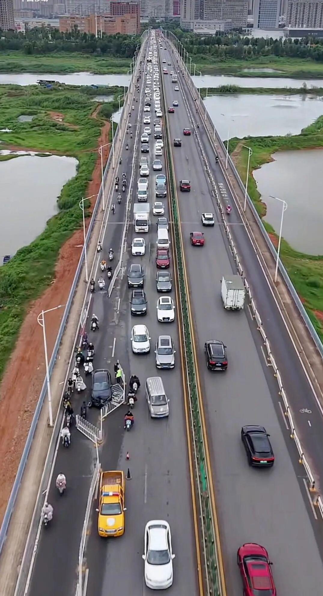 武汉城事! 据网友爆料,9月19日,盘龙城大桥一起车祸。盘龙城大桥连接东西湖与黄陂,但不知为何,这座大桥上经常发生事故。#武汉身边事# #金粉#