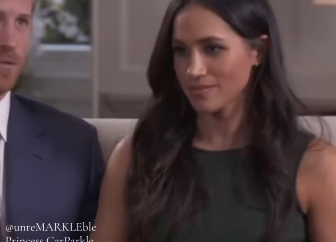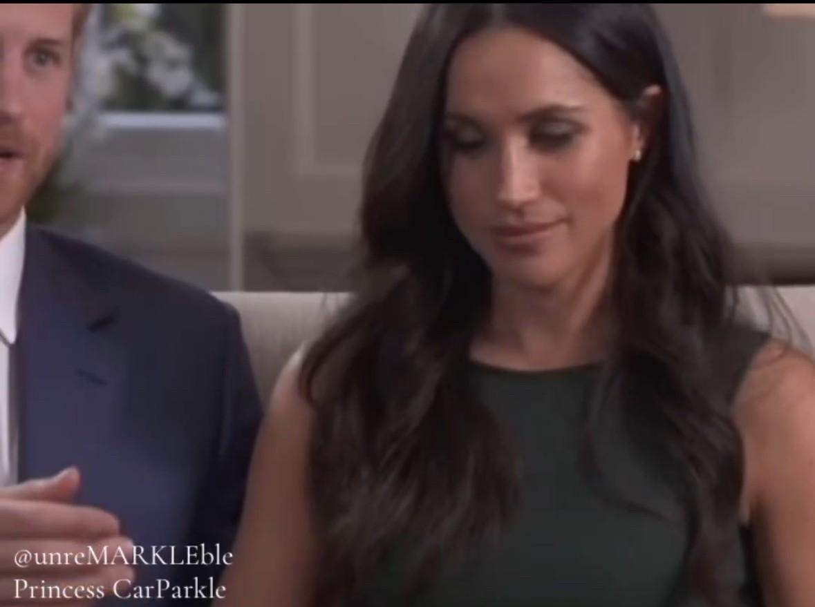 梅根表情管理失控现场之一,这次可是相当精彩。 订婚访谈中,当哈里谈及梅根与他父亲