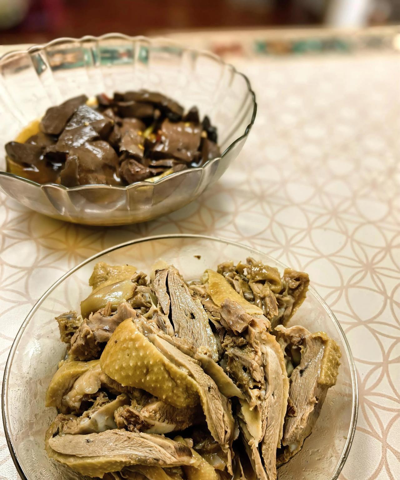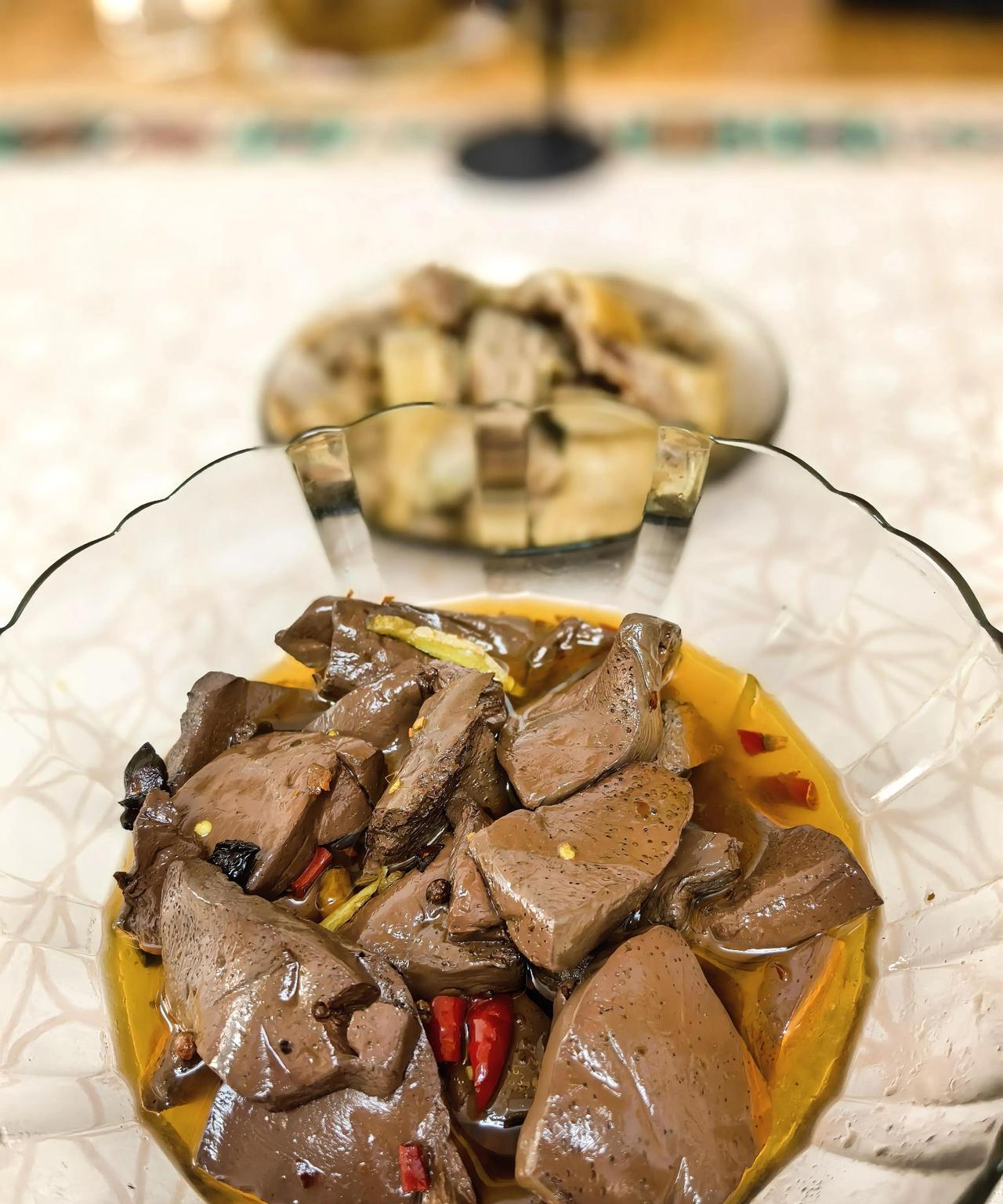 酒龄四十年,戒酒八十三天,滴酒未沾。 中午买了我们这边最有名的肖氏贡鹅、鹅血,贡